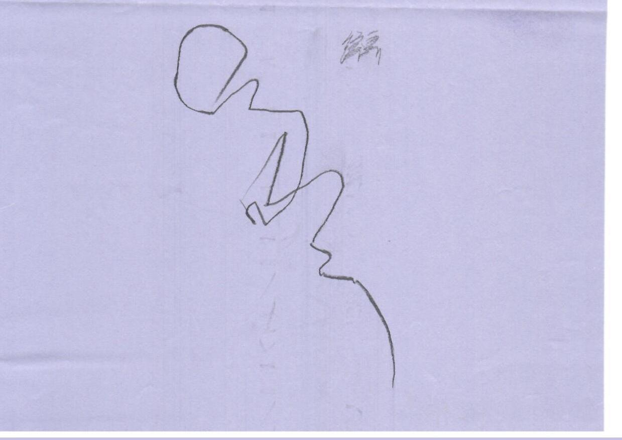 这幅作品是一幅简单的线条画,描绘了一个轮廓化的人物形象。人物姿态似乎是在坐着或是弯曲着,线条极简,背景为单色且无明显节日元素。整体构图简洁,线条流畅,但缺乏明确的主题色彩和圣诞元素。可以通过添加一些节日装饰来增强圣诞氛围。