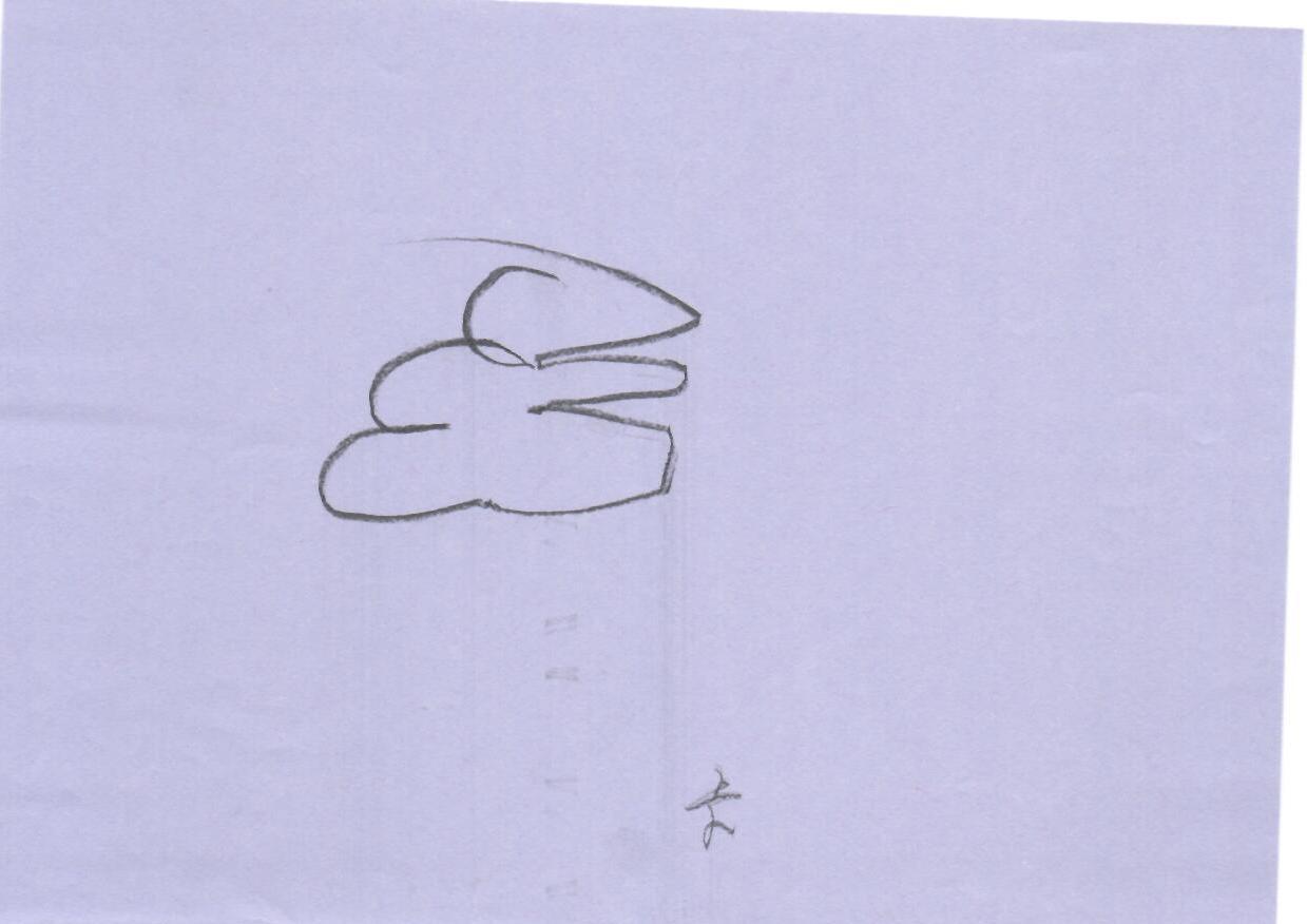 这幅作品是一幅简单的手绘草图,包含一个抽象的形状,可能是一个兔子形象。虽然图中不明显包含人物或节日元素,但可以从其可爱的形状中提取出温馨的情感。作品的整体风格简约,色彩单一,主要是黑白线条构成。