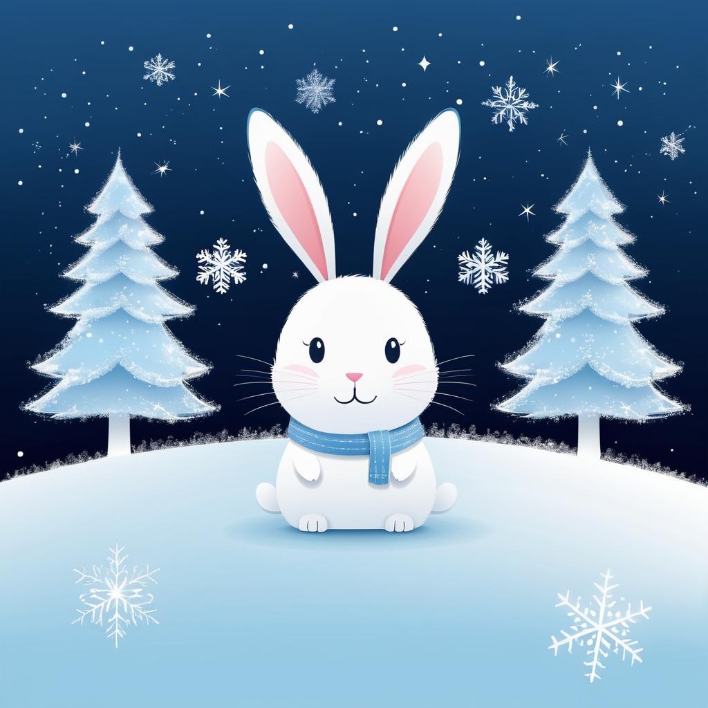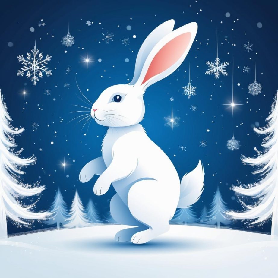可以将这个抽象的兔子形象作为圣诞贺卡的中心图案,周围添加柔和的雪花和闪亮的星星元素。背景可采用淡蓝色或白色,象征冬季的纯净。通过加入小型圣诞树、温暖的灯光效果,以及简单的圣诞祝福文字,使贺卡表现出节日的温馨与愉悦。
