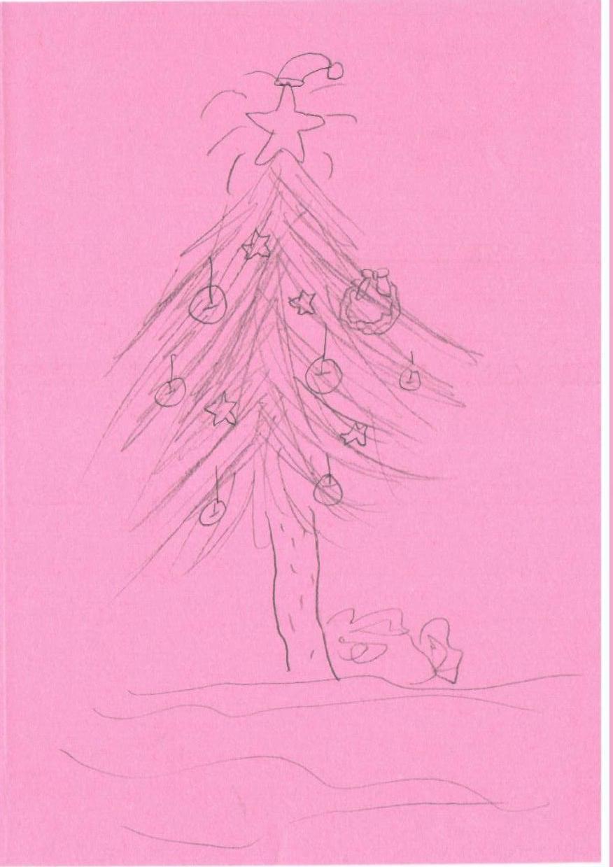 这幅简单的圣诞树素描图为圣诞贺卡设计提供了一个基础。通过添加丰富的细节和色彩,可以将其转化为一幅充满节日氛围的作品。增加的元素如闪烁的灯饰、飘落的雪花以及更多礼物,将使画面更具吸引力和层次感。使用传统的圣诞色彩,如红色、绿色和金色,不仅能提升节日气氛,还能为观者带来温暖和欢乐。通过这些改进,这幅作品能够在视觉上吸引观者,并唤起对节日的美好期盼。