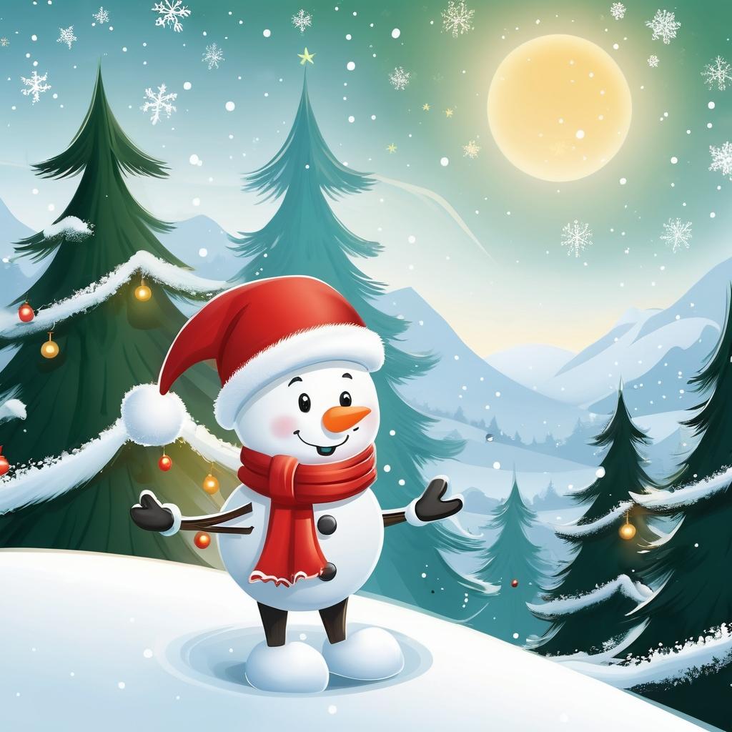 在这幅简单的卡通人物画作中,我们可以通过巧妙的设计转换,将其打造成一张充满圣诞氛围的贺卡。尽管原图中缺乏直接的节日元素,但人物的表情和姿态为我们提供了创作的良好基础。通过为人物添加圣诞帽和红色围巾,并将其置于一个雪景背景中,我们可以营造出节日的欢乐与温暖。背景中的松树上挂满了灯饰,地面覆盖着柔软的雪,使得整个画面显得生动而富有节日气息。这样的设计不仅突出卡通人物的个性化特征,也通过视觉上的节庆元素增强了贺卡的感染力与吸引力。