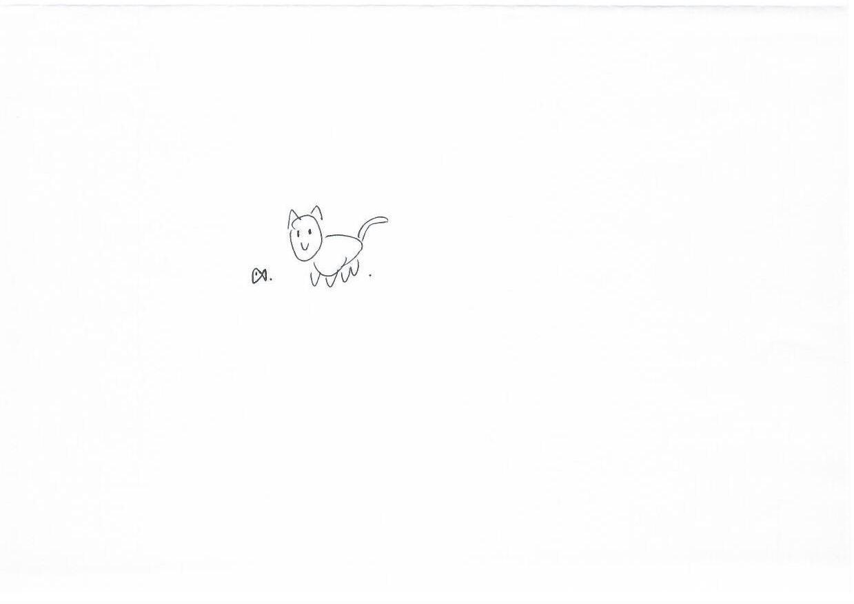这是一幅简单的手绘插画,中心是一只卡通风格的小猫。小猫的姿态活泼,面部表情友好。画面简单,没有明显的节日元素,如雪景、灯光或圣诞树等。整体色彩极为简约,仅使用了黑色线条。