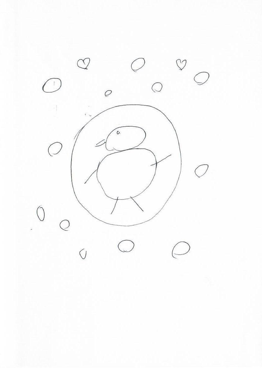 这幅简单的线条画中包含一个圆形和几个小圆点以及心形符号。图中缺乏明显的人物或复杂的细节。可以将这些元素转化为圣诞氛围,例如将中心圆形作为雪人或圣诞装饰物,周围的小圆点作为雪花。整体画面简洁,适合添加颜色和背景元素以增强节日氛围。
