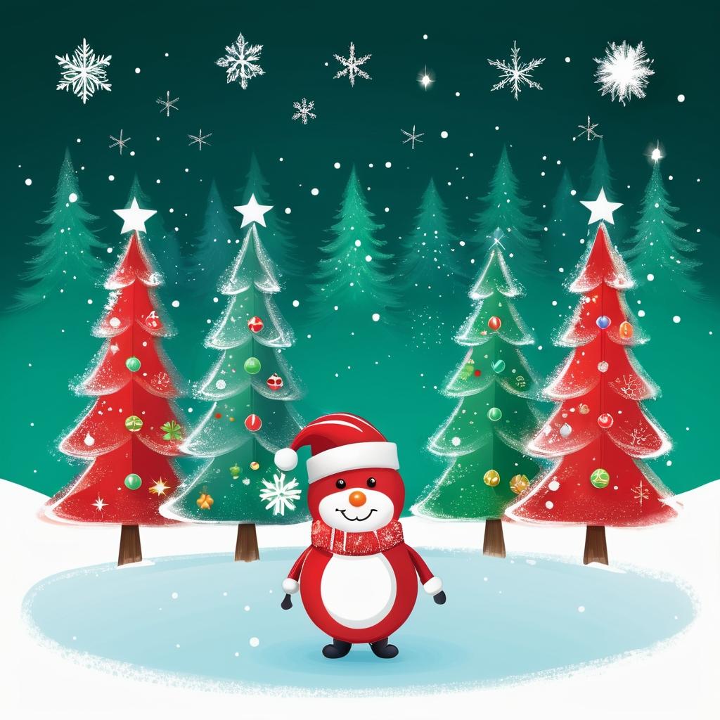 将人物面部的友好表情作为贺卡的情感核心。可为人物添加圣诞帽或围巾以增强节日气氛。背景中加入圣诞树、雪花和星光点缀,结合花朵图案作为装饰,使整幅画面更具节日感染力。