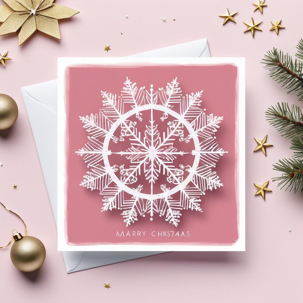 在这幅极简作品中,通过一只简单的手绘眼睛和粉色背景,我们可以感受到一种观察与反思的主题。尽管没有直接的圣诞元素,我们仍然可以通过巧妙的设计将其转化为一张富有节日气息的贺卡。通过在眼睛周围添加精致的雪花和微光点缀,我们能够在保持其原有简约风格的同时,融入更多节日氛围。粉色背景与柔和的白色雪纹和浅金色星光的结合,不仅保持了作品的现代感,还增添了节日的温暖和宁静。这样的设计既简洁又充满情感,适合现代节日的审美。