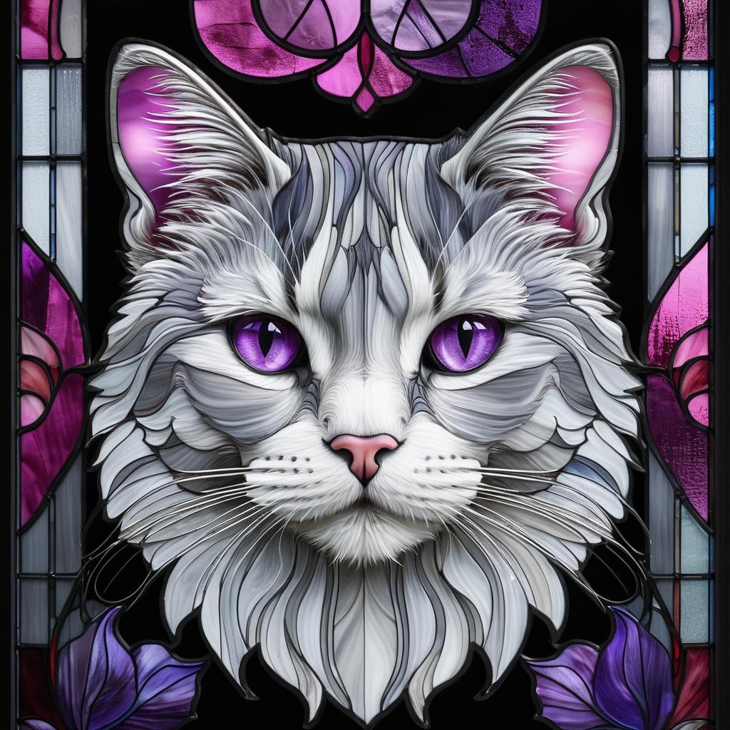 彩色玻璃艺术一直以来都是以其独特的表现手法和色彩运用闻名于世。本文分析的这幅作品以猫为主题,巧妙地结合了粉色、紫色和灰色的色调,营造出了一种宁静而神秘的氛围。画面中,猫的形象通过几何化的表现手法,展现出一种现代艺术的气息。作品的彩色玻璃风格不仅突出了形状的边界,也使得色块之间的对比更为鲜明。
