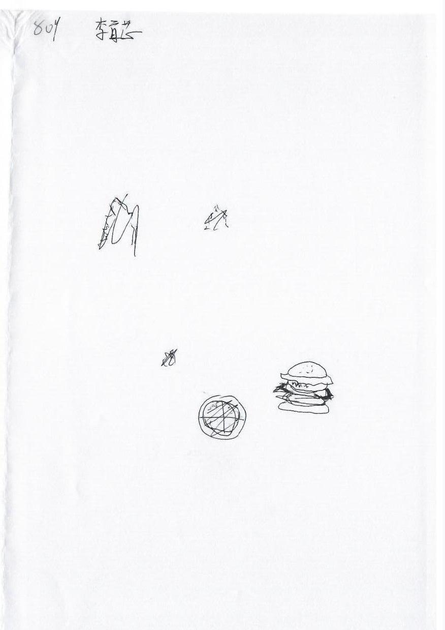 此图由简单的线条构成,包含几何形状和草图般的图案。右下角的形状类似于一个汉堡,周围还有一些不规则的线条和图形。整体风格比较简约,手绘感明显,线条随意且富有童趣。虽然缺乏明显的宠物或耶诞元素,但可以通过添加细节来增强故事性和节日气氛。