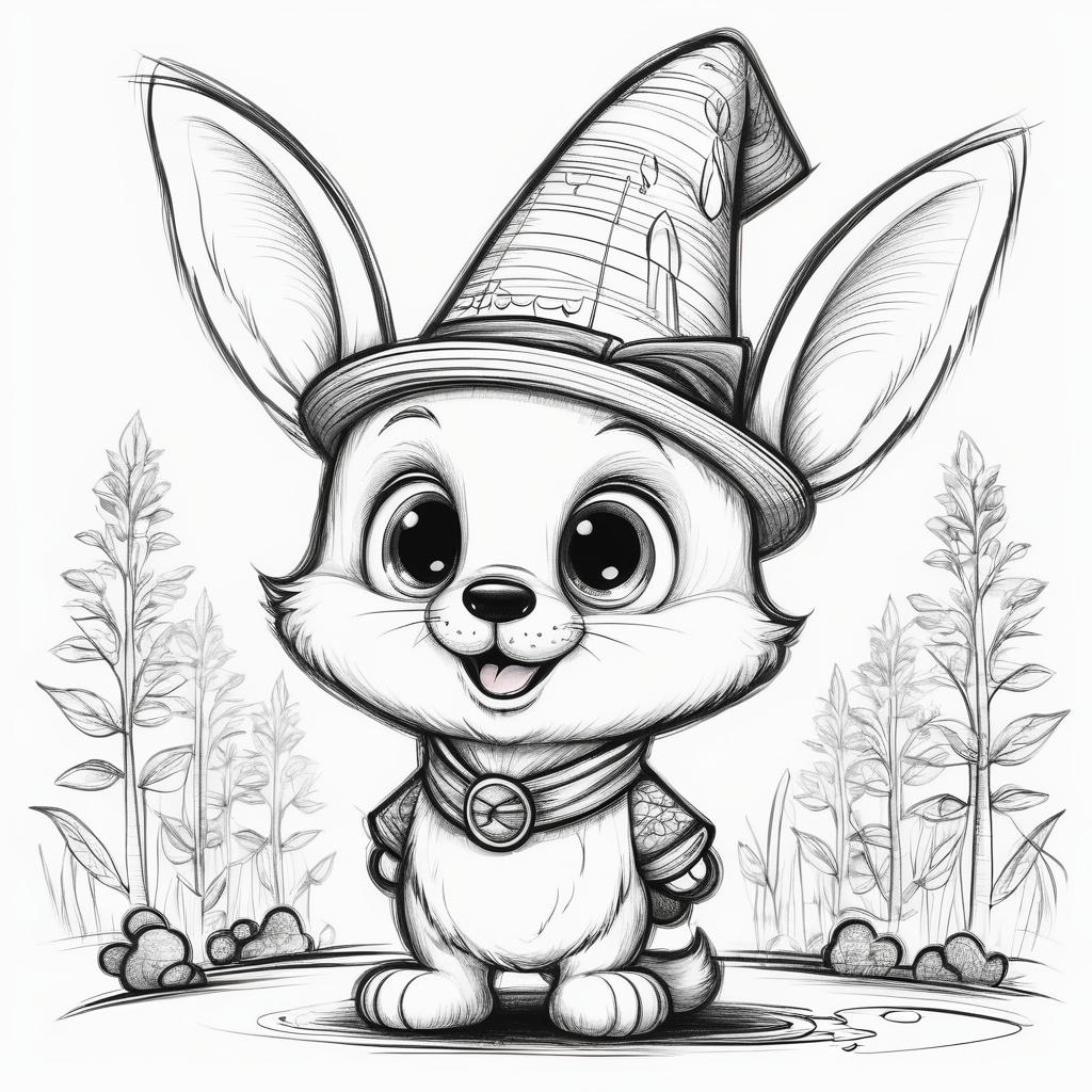 这幅作品充满了童趣,简单的线条勾勒出一个富有想象力的卡通角色,其夸张的表情和配件给人一种轻松愉快的感觉。为了提升这幅作品的深度,可以考虑在背景中加入一些色彩元素,增强画面的活泼感。同时,可以在角色的细节上下功夫,比如增加一些纹理或图案,使角色更为生动。此外,适当引入一些手绘风格的阴影效果,可以使画面更具层次感和趣味性。通过这些调整,作品将不仅仅是简单的涂鸦,而是一个更为完整的艺术表达。