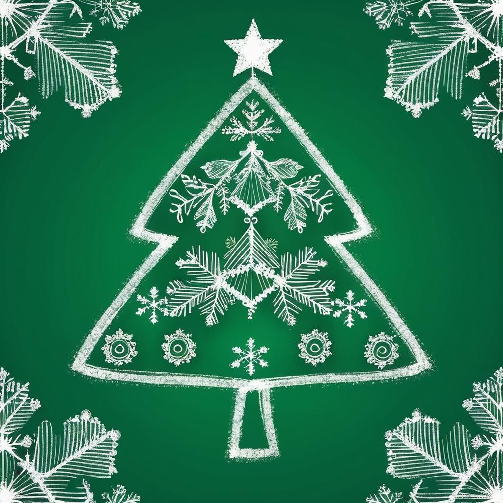 在这幅作品中,我们看到一个简单而富有童趣的圣诞树形象。通过基本的几何形状和线条,艺术家成功地传达了一种纯粹的节日气氛。三角形的树身、顶部的方形星星以及周围的雪花共同构成了这幅作品的核心元素。简单的构图使得观者可以轻松地感受到节日的欢乐和温馨。