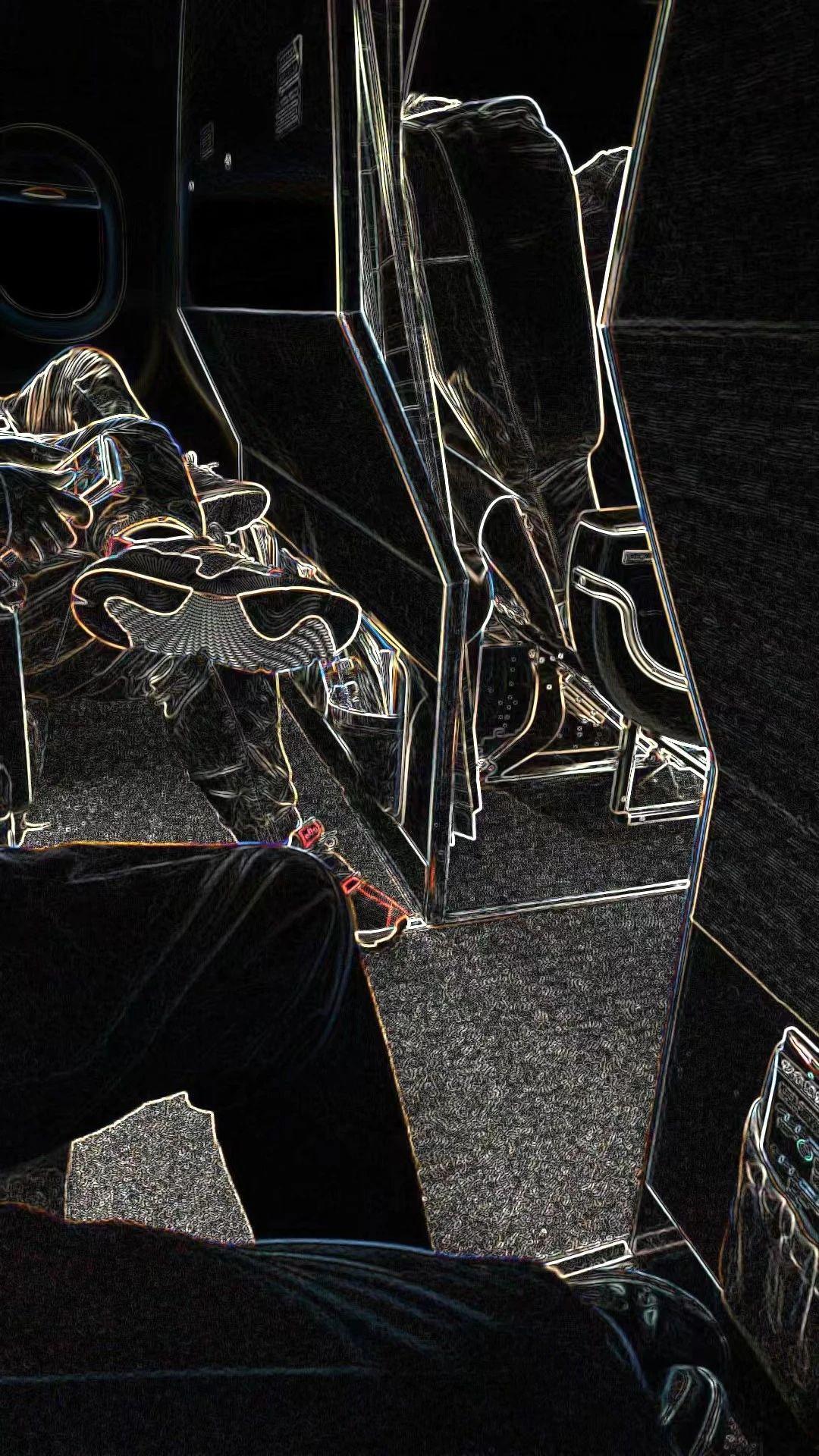 这幅图像呈现了一种独特的线描效果,突出显示了物体的轮廓和形状。主要元素包括座椅、人物和鞋子,构图偏重于前景和背景的分层。整体色调较暗,线条以高对比度的方式增强了视觉冲击力。创作者可能在探索日常生活中的细节,借助线条的形式感传达一种静谧与思考的氛围。
