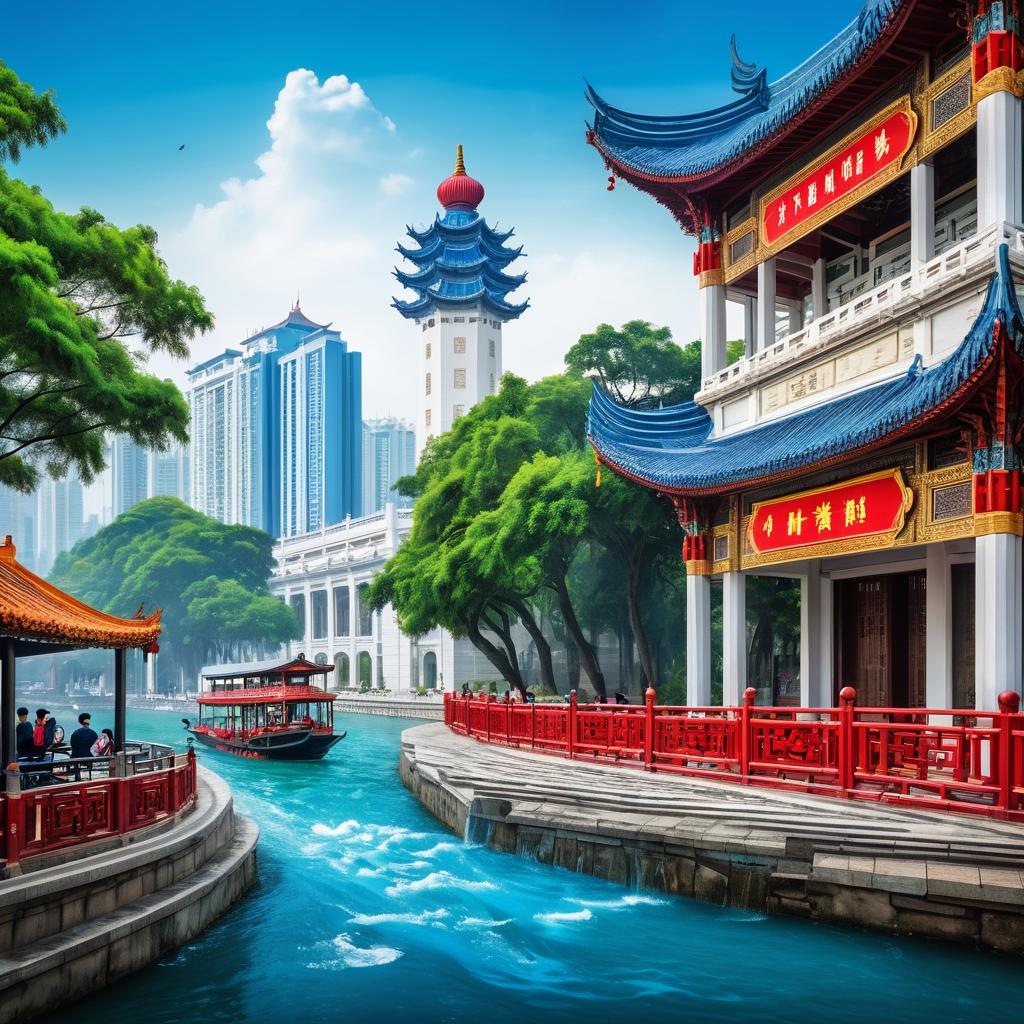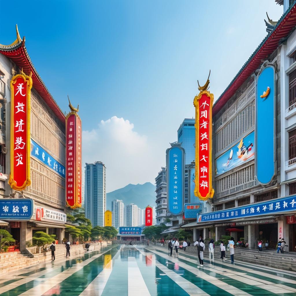 这幅作品通过色彩鲜艳的标识和卡通元素成功地展现了厦门的文化魅力。画面中的每个元素都精心设计,意在吸引观众的眼球,并传递出一种热情友好的城市氛围。厦门作为一个融合了现代与传统的城市,其丰富的文化背景在这幅作品中得到了充分体现。前景中的卡通人物和音乐符号不仅增加了画面的趣味性,也让观众感受到厦门这座城市的年轻与活力。背景中的传统建筑元素则使得画面更具历史厚重感,为整体作品增添了一层深度。为了使作品更加出众,可以考虑在背景中加入更多的地标性建筑,或是通过动态元素如飞鸟和流水,进一步增强画面的生动性。此外,运用丰富的色彩渐变和光影效果,也可以使作品在视觉上更具吸引力。这种多维度的艺术表现,不仅能更好地吸引观众的注意力,也能在视觉上给予观众更多的欣赏空间。