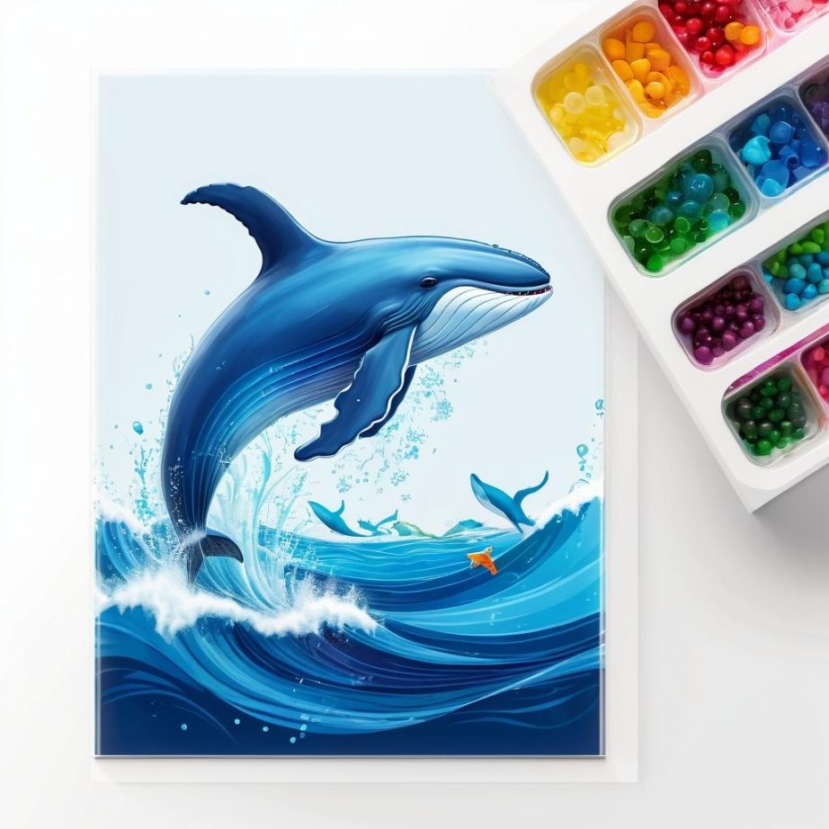 这幅作品展现了儿童艺术作品中常见的元素——简单的线条和鲜艳的色彩。画中的鲸鱼以一种可爱的方式呈现,仿佛在无忧无虑地畅游海洋。这种表现手法不仅仅是对海洋生物的简单描绘,更是对童真和快乐的传达。通过加入海洋背景和其他生物,可以使画面更加丰富和生动。同时,使用不同的色彩层次能够为画面增添深度,吸引观者的目光。儿童艺术作品的重要性在于它们能够激发想象力和创造力,而这幅作品正是这样一种成功的表达。