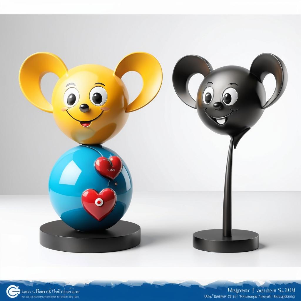 将这幅图像中的卡通角色转化为雕塑设计时,可以考虑使用光滑的表面和柔和的曲线来表现角色的可爱特征。选择温暖色调的材料,如陶瓷或涂漆金属,以增强节日氛围。雕塑可以设计成互动的形式,呈现出两只角色分享礼物的场景,强调分享和欢乐的主题。通过简单而富有表现力的造型,使作品在空间中具有强烈的视觉冲击力。