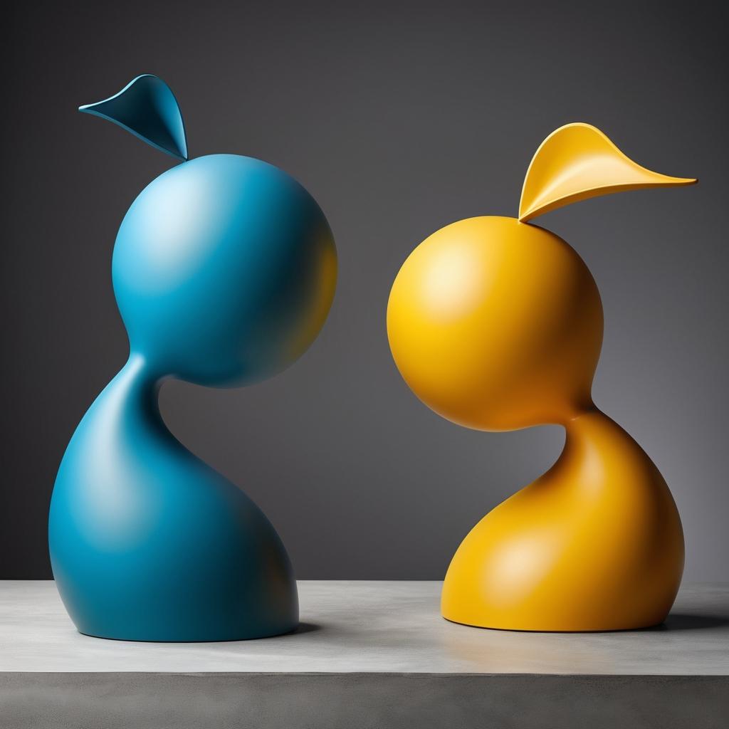 这幅图片通过简单而富有表现力的卡通角色传达出节日的欢乐与分享主题。温暖的橙色背景增强了作品的节日氛围,而角色之间的互动则表现出一种轻松愉悦的情感。这种图像元素为雕塑设计提供了丰富的灵感来源。在雕塑创作中,可以通过使用光滑的表面和柔和的曲线来捕捉角色的可爱特征,同时选用温暖色调的材料以增强节日氛围。设计上可以考虑互动的形式,呈现角色分享礼物的场景,强调分享与欢乐的主题。通过这种方式,雕塑不仅在形式上展现出强烈的视觉吸引力,还在情感上与观众产生共鸣,完美地将图像中的艺术元素转化为立体的艺术表现。