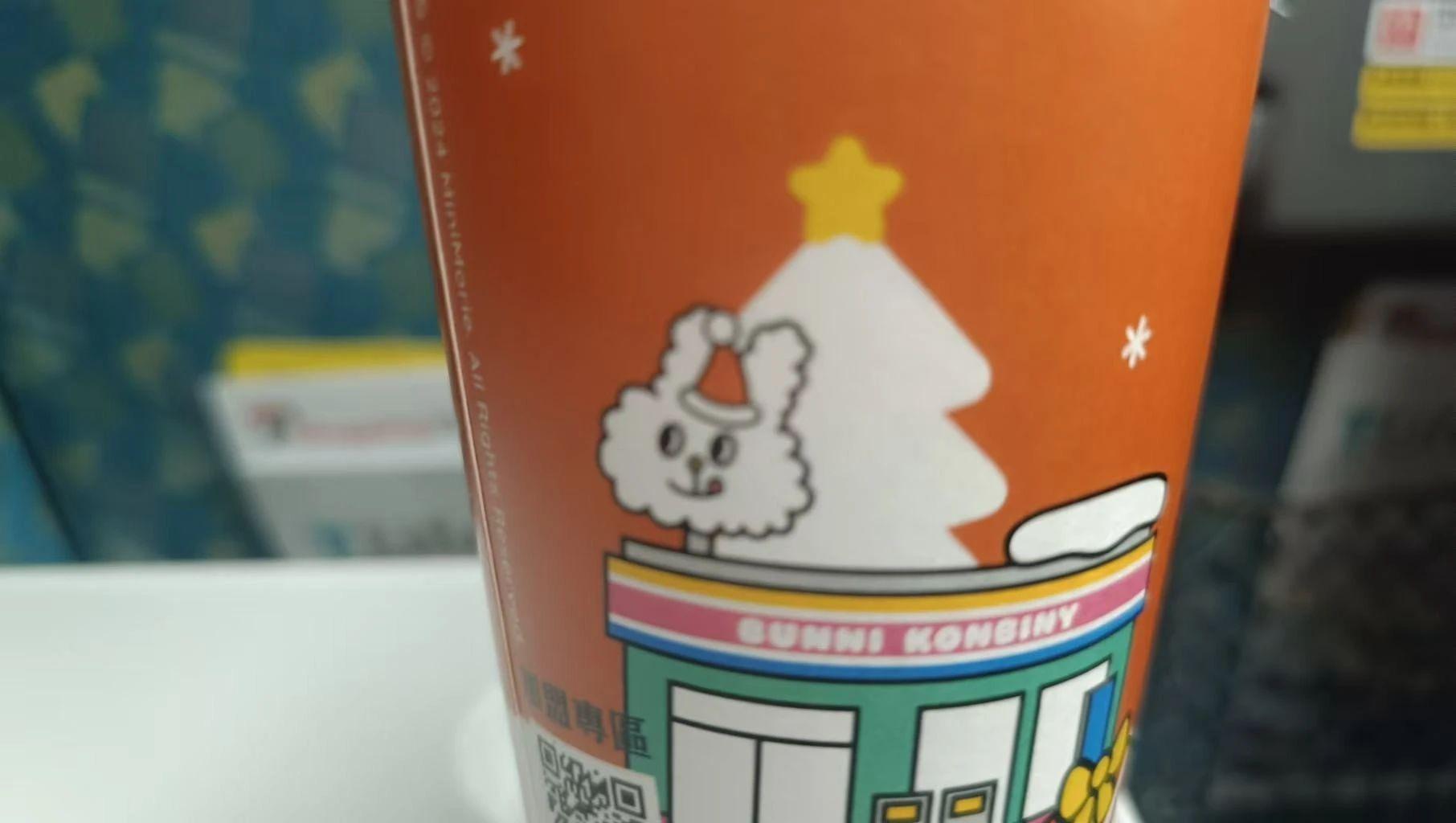这幅作品展示了一个带有卡通图案的饮料杯,背景为橙黄色,图案中包括了一棵圣诞树和戴圣诞帽的小动物形象。整体风格活泼可爱,色彩鲜艳。图案设计简洁,线条流畅,主要运用了对比鲜明的色块,营造出节日的氛围。作品的主题是欢快和节日庆祝,适合转换为具有亲和力和趣味性的雕塑设计。