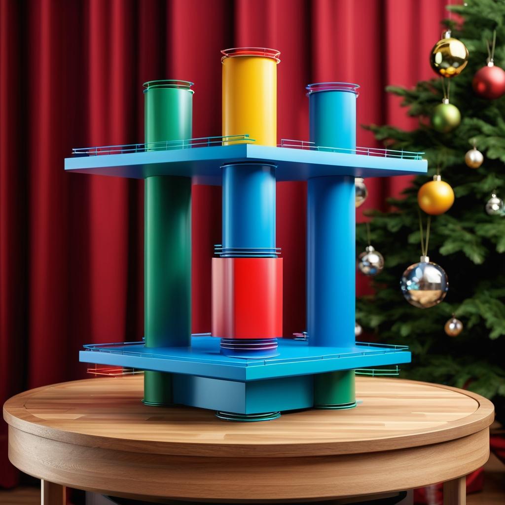 这幅作品的设计充满了节日的气息,通过简单而鲜明的卡通形象传达出一种欢快的氛围。图案中的元素,如圣诞树和戴帽子的小动物,使用了对比鲜明的色彩和流畅的线条,营造出一种轻松愉悦的视觉效果。这样的设计非常适合转化为雕塑作品,尤其是运用在公共空间中,可以吸引观众的注意并带来节日的快乐。通过将这些平面元素转化为立体雕塑,可以增强其空间表现力,并通过巧妙的材质选择和设计,使其在形式与功能上实现完美的统一。这种雕塑设计不仅仅是对原始图案的简单复制,更是在艺术表现力和观众互动体验上的深度挖掘。