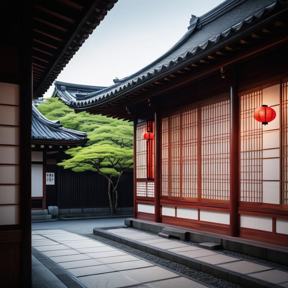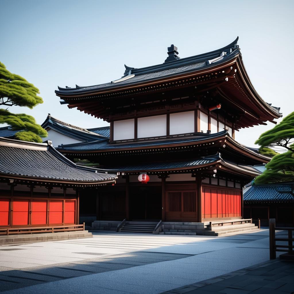 在现代城市的背景下,一座传统的日式建筑静静伫立,成为新旧交融的象征。这幅作品不仅仅是对建筑外观的展示,更是对文化传承与现代发展的深刻思考。传统的深色木质结构与周围现代化建筑形成鲜明对比,突显出历史与现代的交汇点。通过红色灯笼的点缀,整幅作品充满了温馨的文化氛围。