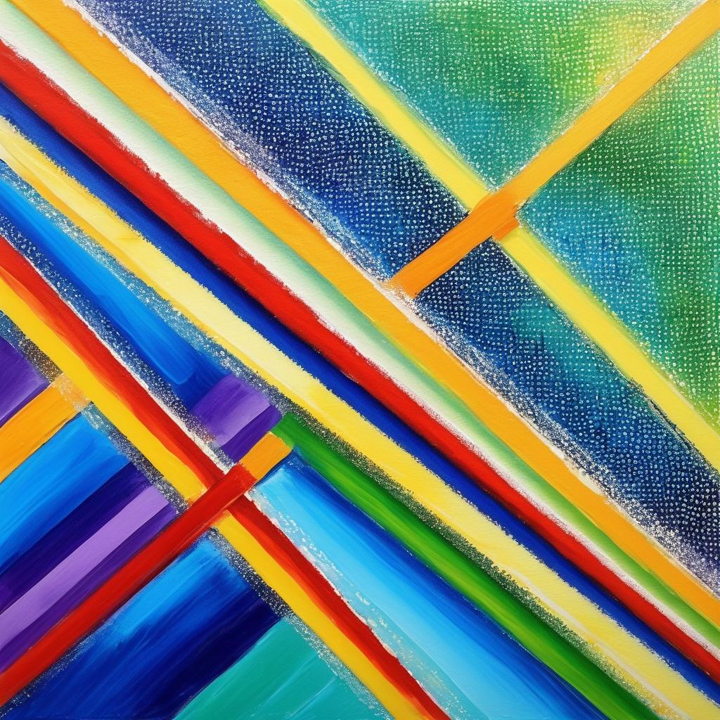 在这幅充满童趣的作品中,创作者使用了多种色彩的线条,形成了一个充满活力和动感的画面。蓝色、绿色、红色和黄色的线条在画布上交错,仿佛在进行一场无声的舞蹈。这种线条的自由组合,让人感受到孩子在创作时的无拘无束以及对色彩的大胆运用。画面的左侧,紫色和橙色的条纹为整个作品增添了一种对比效果,使得作品更加丰富多彩。儿童的艺术作品往往充满了天真和创造力,他们没有被成规所束缚,因此能够创造出令人耳目一新的视觉效果。为了使这幅作品更加具有艺术性,创作者可以尝试将其扩展为一个系列,每一幅都专注于一种特定色调或者主题。通过引入更多的绘画技巧,比如使用点描法来增加细节,或通过不同材质的尝试,如水彩或丙烯颜料,以创造更深层次的效果。同时,加入背景故事可以为作品增添更多的情感和叙事性,使得观众能够更深入地理解和欣赏作品的内涵。