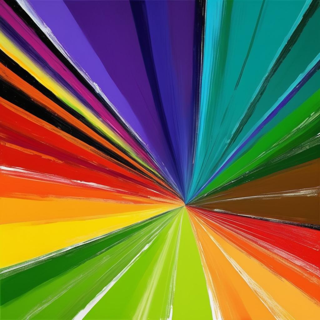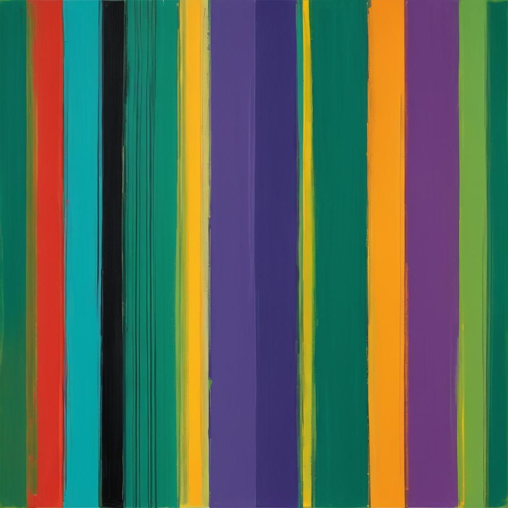 这幅作品使用了多种鲜艳的颜色,包括绿色、黄色、橙色、红色和紫色。线条和色块的交错创造出一种层次感和动态感。整体构图较为随意,给人一种自由和奔放的感觉,仿佛是一种情感的直接表达。