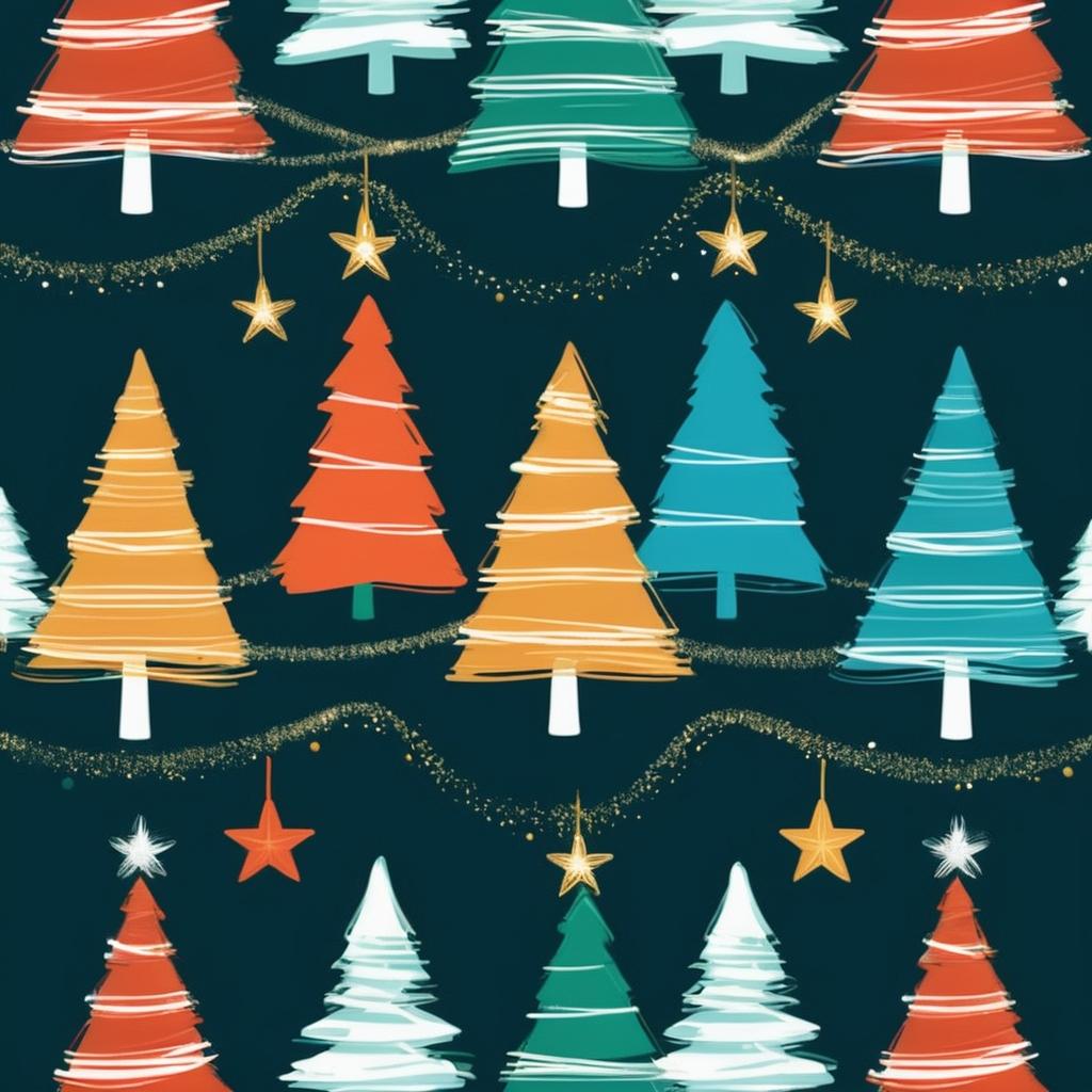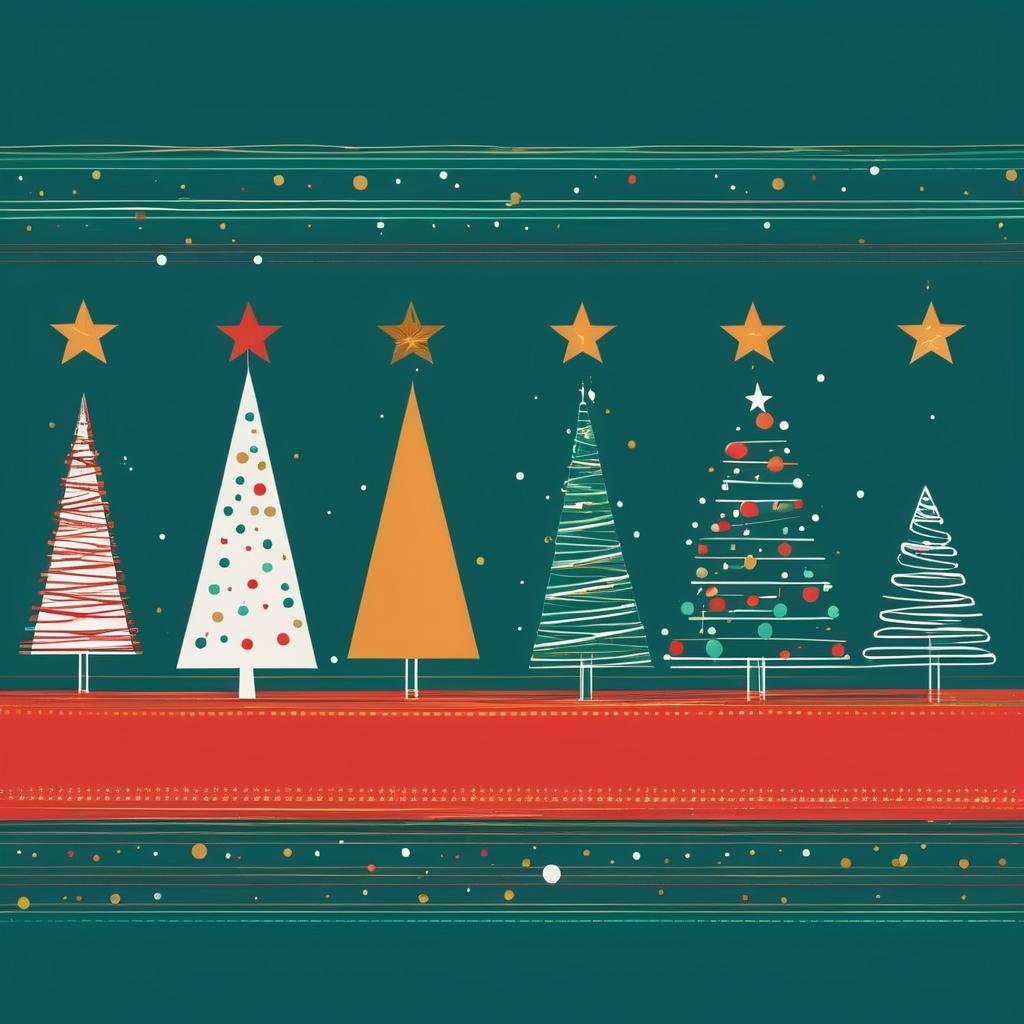 在这幅抽象作品中,色彩的动感与线条的交错为我们提供了打造现代极简圣诞卡的灵感。通过将鲜艳的绿色和红色转化为抽象的圣诞树形象,并加入金色的星光点缀,不仅赋予画面节日的温馨感,还保持了抽象艺术的独特魅力。同时,橙色和蓝色的线条为背景增添了动感,使整幅作品充满了节日的活力。这种设计不仅保留了艺术的简洁美感,更通过色彩的巧妙运用,传达了节日的欢乐与和谐。