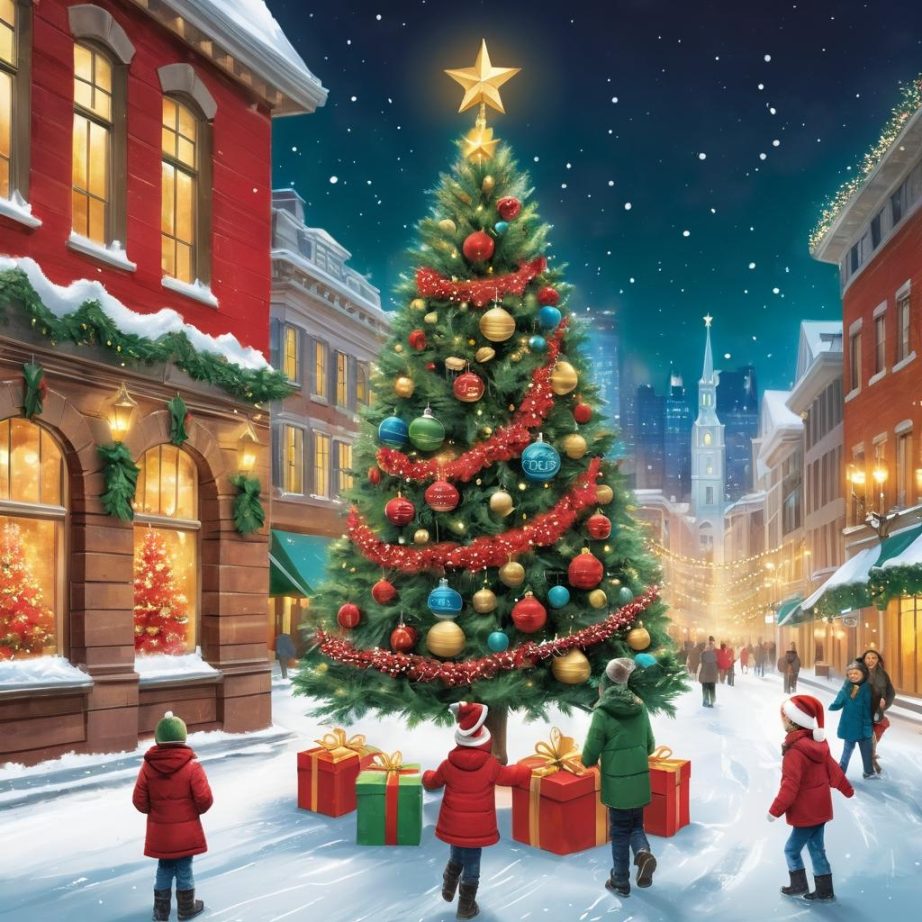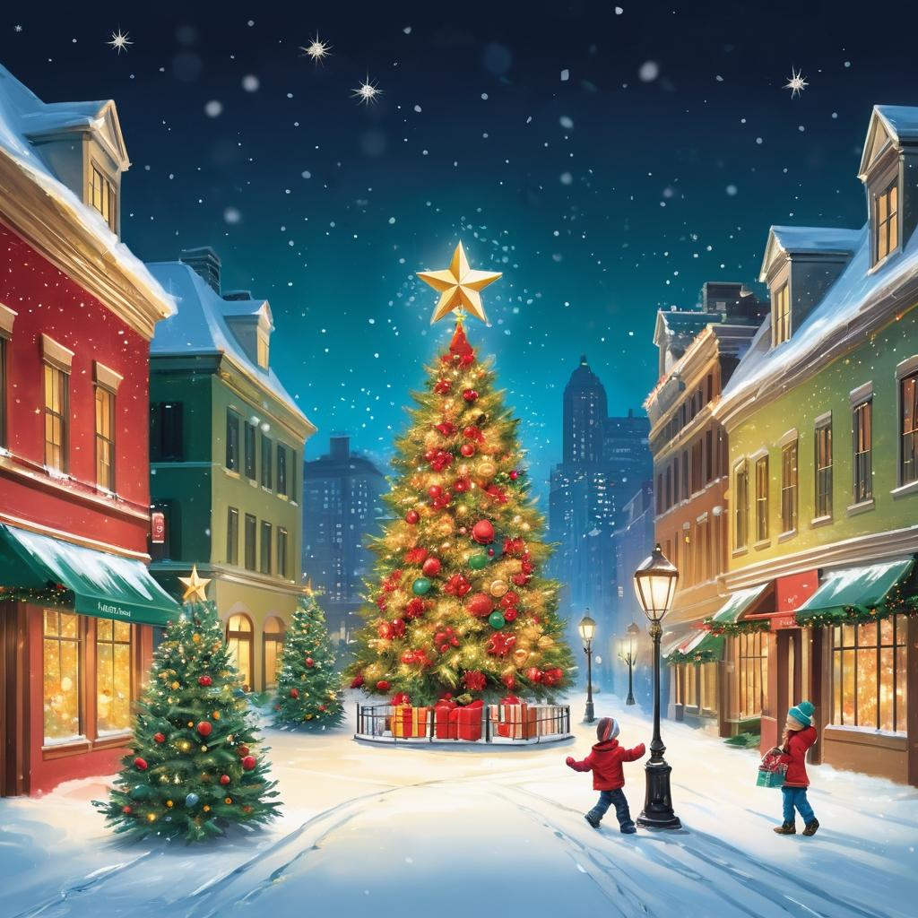 在这张图片中,巨大的圣诞树被璀璨的灯光装饰,成为了节日的核心象征。为了将其转化为具有浓厚圣诞氛围的贺卡设计,可以通过增加更多的节日元素来丰富画面。例如,在圣诞树周围添加飘落的雪花,使整体呈现出一种冬季节日的梦幻感。同时,人物的姿态和表情也可以被巧妙地融入设计中,通过强化他们与圣诞树的互动,增强图像的情感感染力。背景中可增设彩色灯笼和圣诞花环,以进一步提升节日气氛的层次感。这样的设计不仅捕捉了圣诞的欢乐与温暖,也使得每一张贺卡都充满个性化的节日祝福。