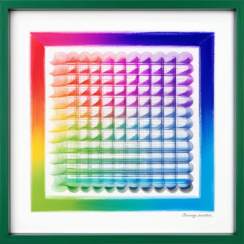 作品中的线条主要是绿色、红色、粉色和蓝色的简单几何图形,包括三角形和方形,这些线条展示了患者在握笔时的稳定性。色彩方面,采用了明亮的绿色、红色、粉色和蓝色,显示出对色彩的基本掌控。形状则以简单的几何图形为主,帮助评估患者在控制笔画力度和方向上的进展。
