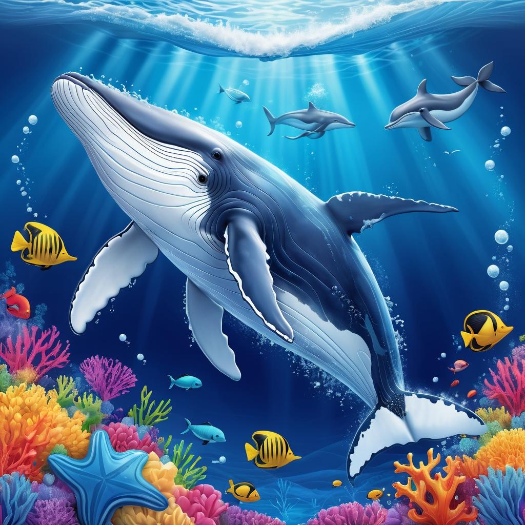 这幅作品展现了儿童艺术作品中常见的元素——简单的线条和鲜艳的色彩。画中的鲸鱼以一种可爱的方式呈现,仿佛在无忧无虑地畅游海洋。这种表现手法不仅仅是对海洋生物的简单描绘,更是对童真和快乐的传达。通过加入海洋背景和其他生物,可以使画面更加丰富和生动。同时,使用不同的色彩层次能够为画面增添深度,吸引观者的目光。儿童艺术作品的重要性在于它们能够激发想象力和创造力,而这幅作品正是这样一种成功的表达。