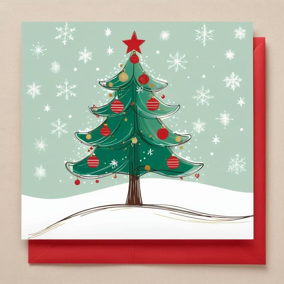 通过分析这幅手绘作品,我们可以将其转化为一张现代简约风格的圣诞贺卡设计。虽然原图简单,但其中的圣诞树、心形和星星元素为节日设计提供了良好的基础。通过为树和心形添加绿色和红色,以及为星星添加金色,可以增强视觉吸引力。背景的柔和雪景不仅补充了节日氛围,还为整个设计增添了温馨的感觉。通过这些细节的调整,最终的贺卡不仅保留了原有的童趣,还充满了现代节日的优雅。