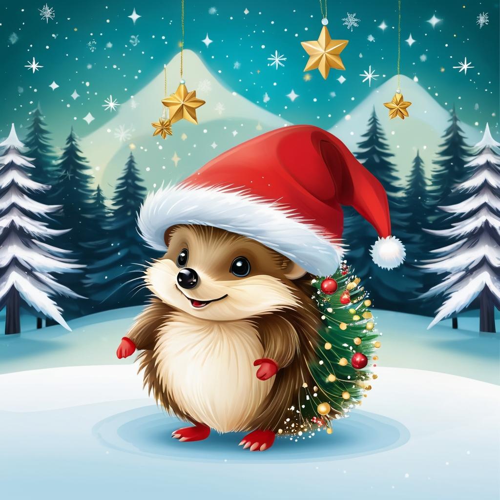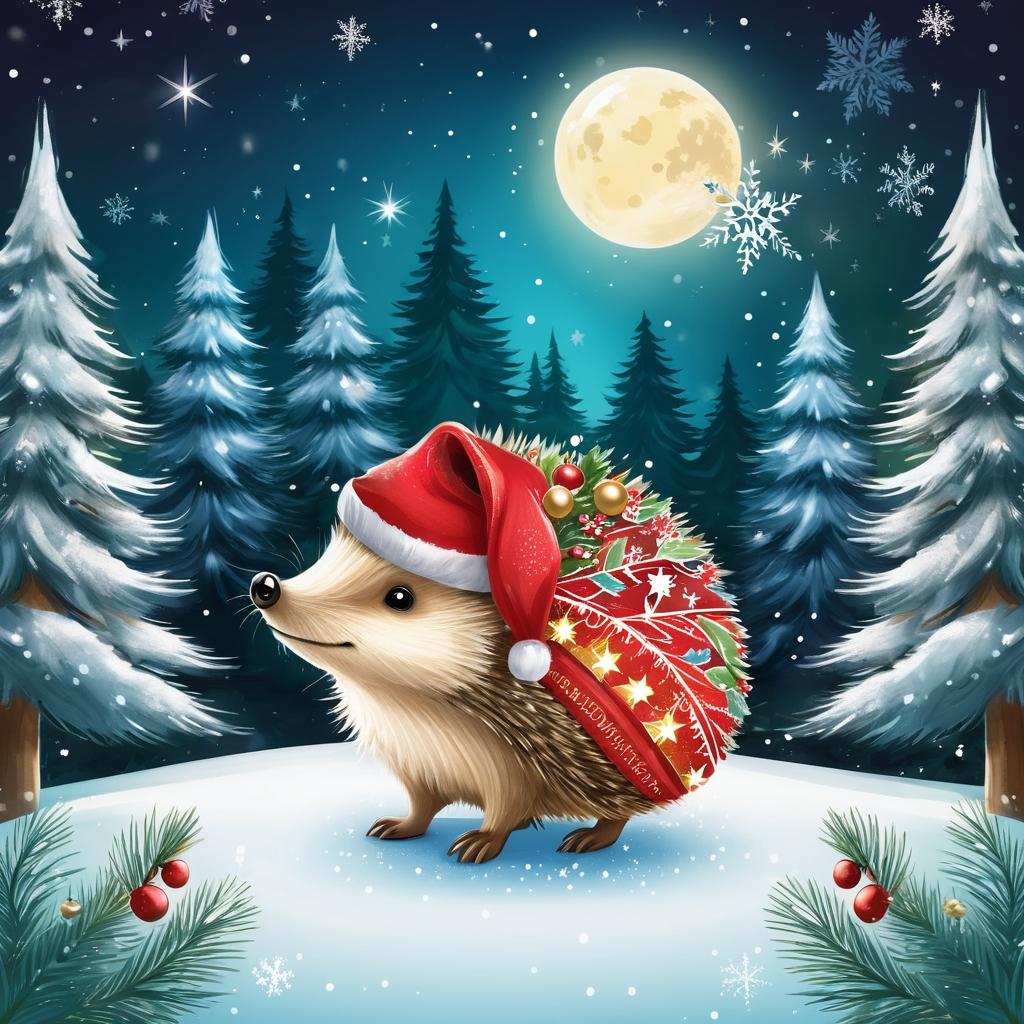 通过对这幅插图的分析,我们可以将其转化为富有圣诞气息的贺卡设计。这只色彩斑斓的刺猬,原本就具有可爱的魅力,而在其基础上添加节日元素,如金色小星星、雪花和圣诞树,可以进一步提升节日氛围。在刺猬头顶加上一顶迷你圣诞帽,将背景设计成一个温暖的冬日森林,通过柔和的灯光效果,增强画面的温馨感。这种设计不仅保留了原有插图的活泼性,还通过节日元素的巧妙融合,创造出一种充满节日欢乐与幻想的独特贺卡。