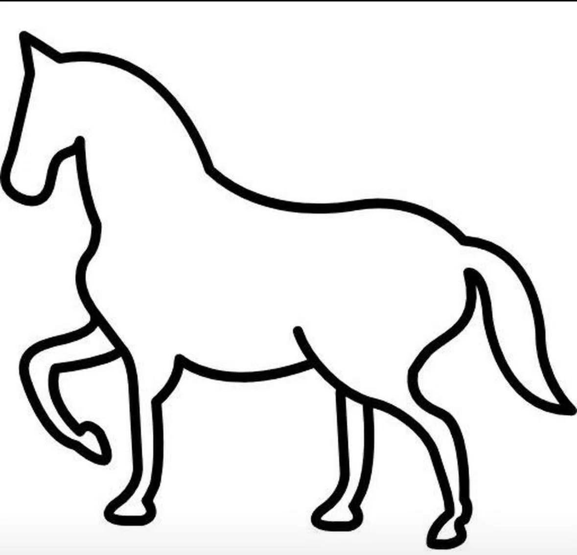 这是一幅简单的线条画,描绘了一匹马的轮廓。图中没有直接的人物或节日元素,但马的优雅姿态可以转化为圣诞氛围中的核心元素。虽然缺乏色彩和细节,但其简洁的线条提供了极好的创作空间。可以考虑在背景中加入雪景、圣诞树以及灯光装饰。色彩方面,红、绿、金等圣诞主题色可以应用于背景和装饰元素上。