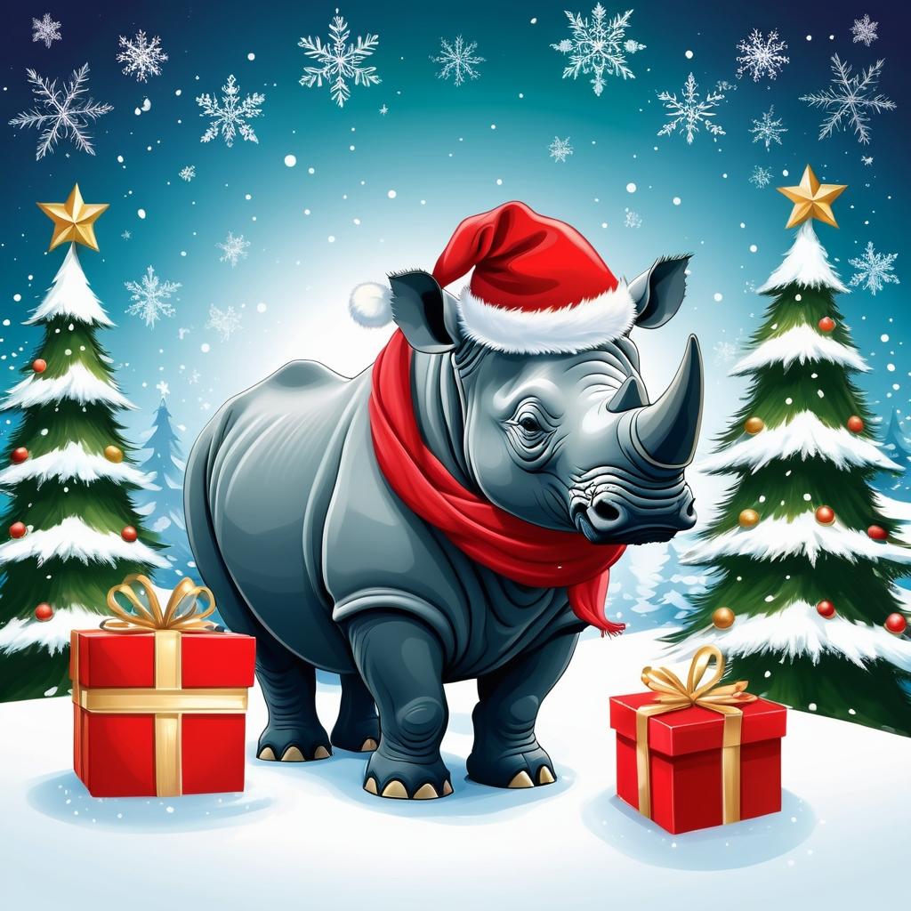 通过分析这幅卡通犀牛图像,我们可以将其转化为一张充满圣诞气氛的贺卡设计。犀牛的可爱表情和红色心形为节日氛围的营造提供了基础。可以为犀牛添加圣诞帽和围巾,使其瞬间成为节日的主角。背景中加入雪花飘落和圣诞树装饰,进一步增强画面的节日感。同时,利用红色心形作为圣诞装饰球的设计灵感,将其与周围的礼物盒和暖色灯光结合,创造出温馨而欢快的节日场景。通过这些元素的整合,贺卡将不仅仅是简单的节日祝福,更是一种视觉上的温暖与慰藉。