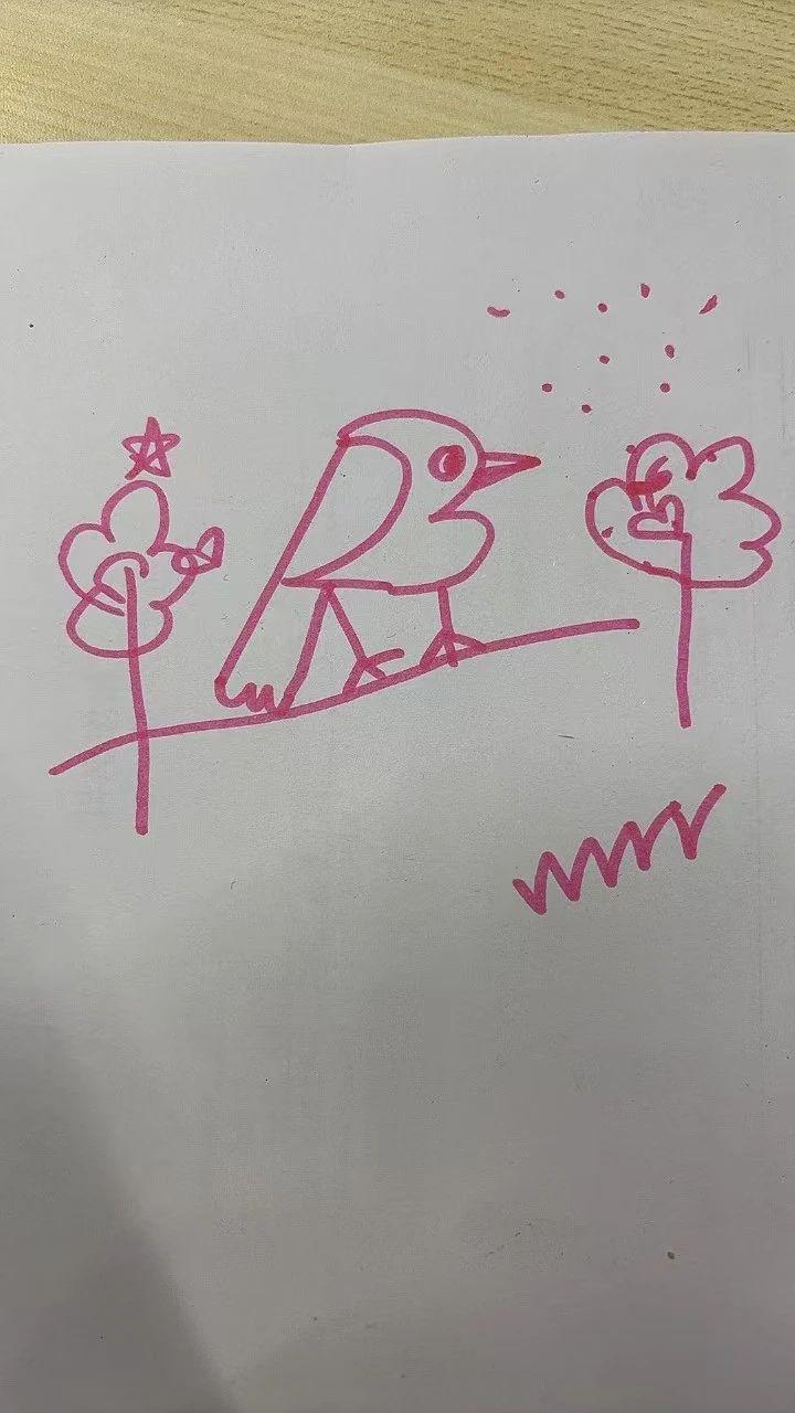 在这幅简约的手绘作品中,我们看到了简单的线条和图形,但这并不妨碍我们将其转化为充满节日气氛的圣诞贺卡。通过为小鸟添加圣诞帽,以及给树木装饰节日灯饰和星星,我们可以创造出一种既现代又温馨的节日氛围。此外,背景中加入柔和的雪花和星光效果,不仅丰富了画面的层次,也提升了整体的节日感染力。这种设计能够通过简单的元素传达节日的快乐与温暖,非常适合用于圣诞贺卡的创作。
