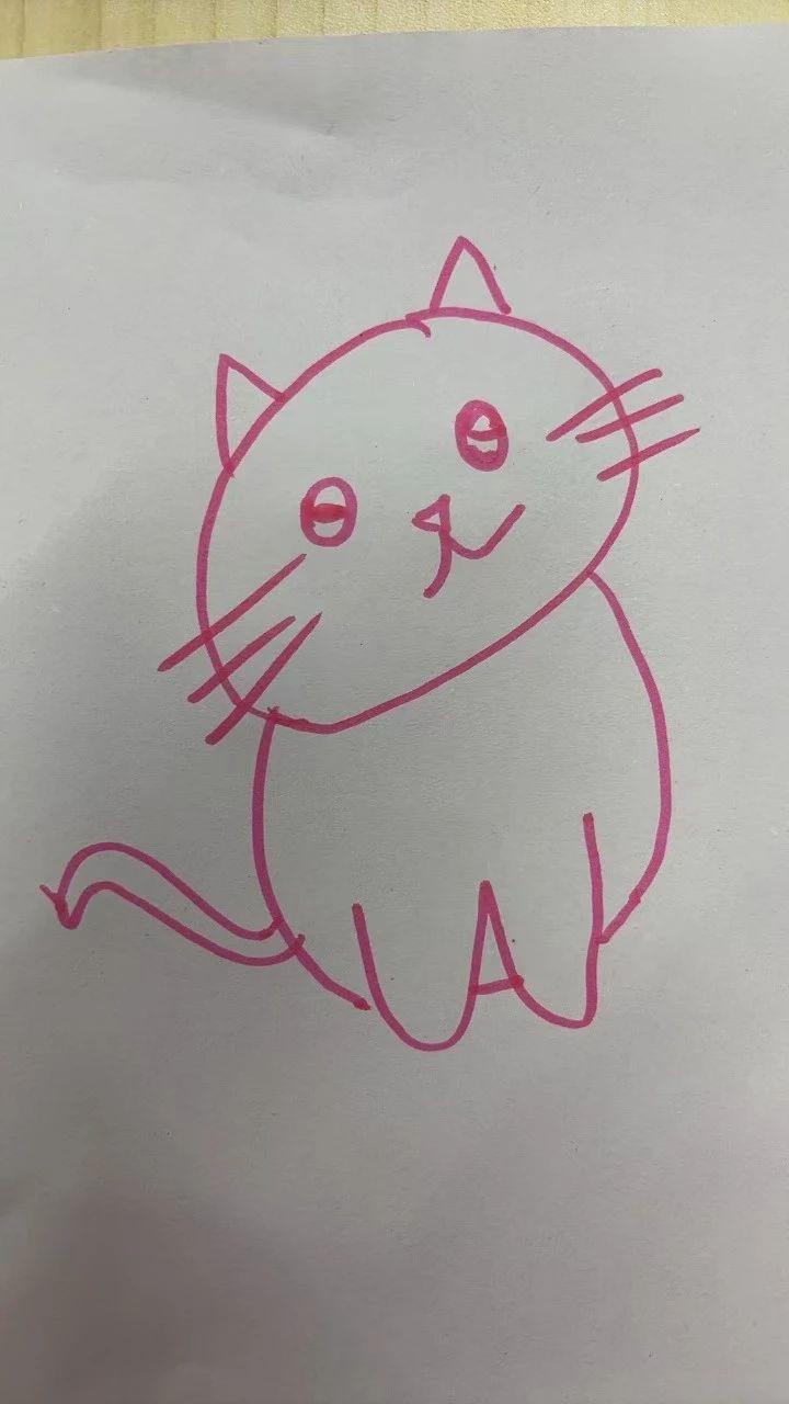 这是一幅简洁的手绘卡通猫咪形象,线条简单流畅,主体为粉色轮廓的猫,整体风格可爱而富有童趣。尽管图中没有直接的圣诞元素,但猫咪的可爱和温暖可以很好地转化为圣诞卡的核心元素。通过添加节日相关的背景元素,如圣诞帽、礼物盒或雪花,可以营造出浓厚的节日氛围。
