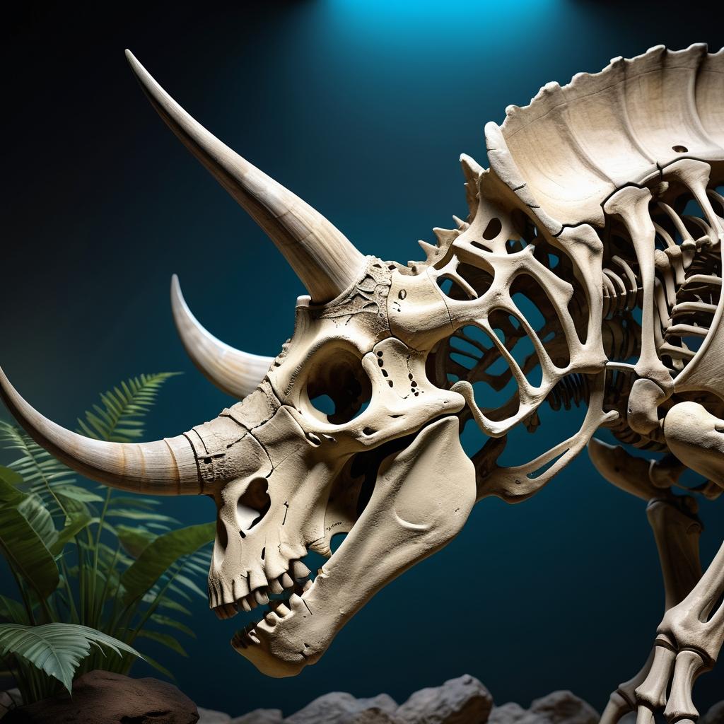 这幅以三角龙骨架为主题的作品,为我们展现了一个令人敬畏的史前世界。骨架的呈现不仅仅是对生物形态的展示,更是一种跨越时空的对话。通过细致的灯光处理,骨架的每一处细节都被清晰地呈现出来,仿佛在诉说着那段久远的历史。为了使这幅作品更具吸引力,可以在背景中融入一些史前环境的元素,这不仅增加了视觉的层次感,也为观众提供了更多想象的空间。现代数字艺术的应用可以为古老的骨架赋予新的生命力,通过动态光影和色调对比,使其在静态的展览中焕发活力。这样的艺术创作,不仅是对过去的探索,也是对未来的思考。通过这些艺术手段,我们能够更好地理解和欣赏自然的伟大。
