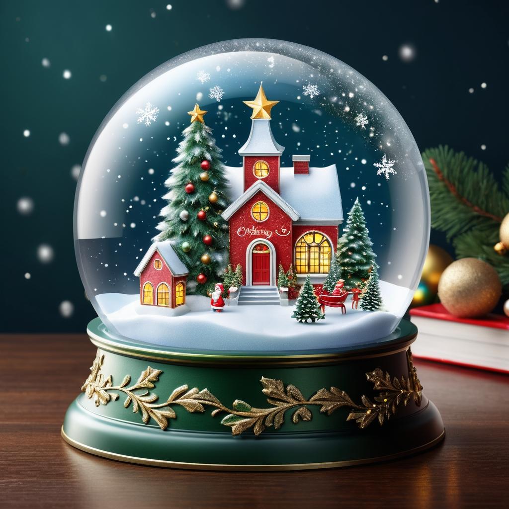 将图片中的大型透明雪球作为设计的核心。可以将人物的姿态和服装细节融入到贺卡中,增添个性化特征。背景可以添加更多的节日元素,如闪烁的灯光和雪花,增强圣诞氛围。利用暖色调的灯光效果,突出节日的温暖与欢乐。