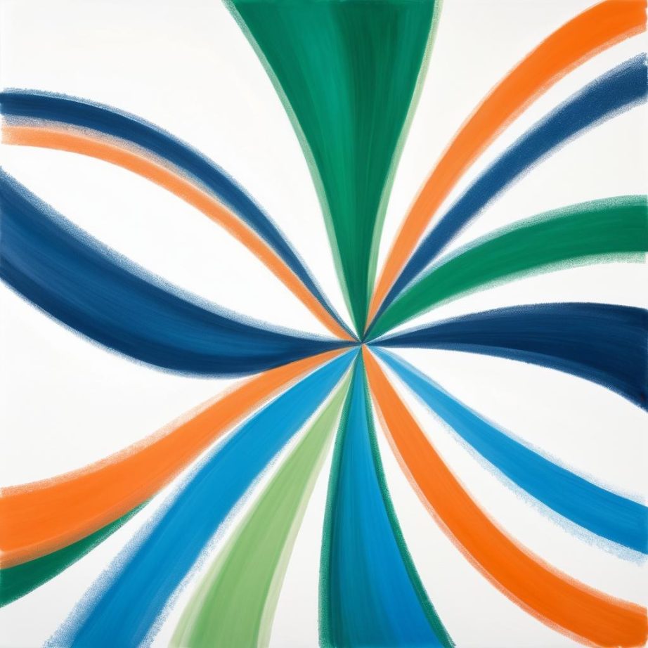 这幅作品展现了一种自发和自由的创作精神。使用了绿、橙和蓝色的线条,形成了一个抽象的构图。线条交错,形成了动态的视觉效果,传达出一种随意和欢乐的情感。图中颜色的选择给人一种轻松和愉悦的感觉,可能反映了作者在创作时的心情。