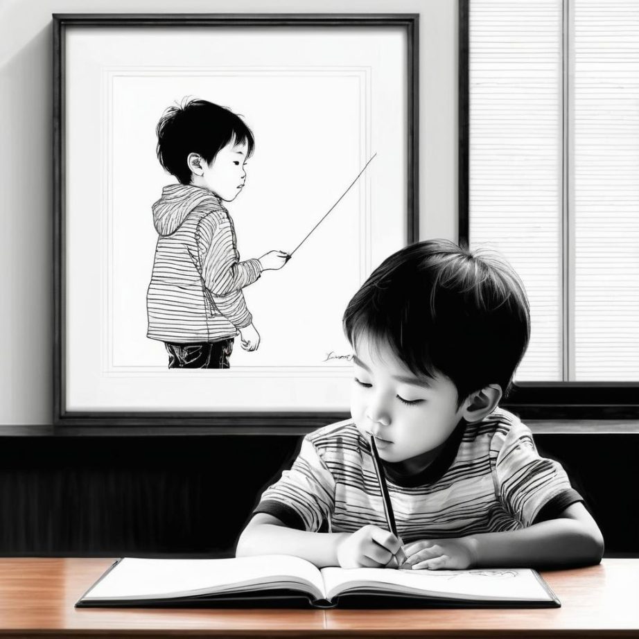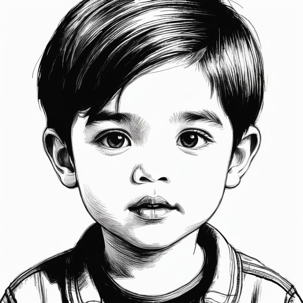 这幅作品以其朴素的线条和简洁的构图,展现了儿童画作的独特魅力。通过简单的黑色墨水线条,一个生动的人物形象跃然纸上。作品无背景元素,使得线条成为视觉的焦点,突显了孩童对世界的直接观察与表达。这种风格让人联想到Art Brut(原生艺术),强调纯粹和未经修饰的艺术表达。对于这样一幅作品,增加背景元素可以提升其故事性和层次感。想象一个简单的房间场景或自然背景,可以使人物形象更加生动。同时,引入色彩不仅能丰富视觉效果,还能增强情感表达,使作品在保留童真风格的同时,更具艺术深度。儿童艺术的独特之处在于其纯粹和创意,这幅作品正是这种特质的真实写照。通过适当的艺术提升,它可以成为一件更具深度和吸引力的艺术作品。