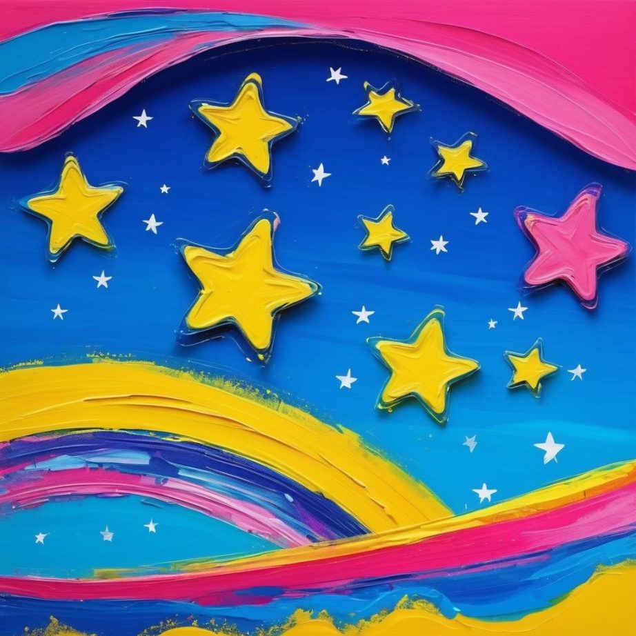 这幅作品展现了孩子对色彩和形状的直观感受,粉色背景与蓝色波浪形成鲜明对比,表现出一种活泼和愉悦的氛围。可以通过增加背景细节,如星星或云朵,来提升画面的深度和丰富性。同时,可以尝试在人物表情和动作上增加细节,使其更具生动性和个性化。通过这些调整,作品将更具视觉吸引力和故事性。