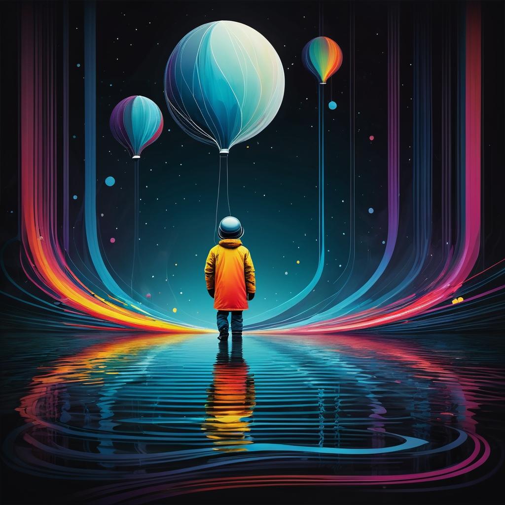 在这幅充满童趣的作品中,我们看到一个简单而富有想象力的世界。画面中的人形轮廓似乎漂浮在一个梦幻的环境中,周围的线条和形状可能代表着水流或植物。这种创作方式常见于儿童艺术中,体现了他们对世界的独特观察和想象。为了更好地呈现这种想象力,建议在背景中加入更多细节,如水中的反射或更多的自然元素,这样可以增加画面的层次感和趣味性。此外,通过调整色彩组合,可以使主题更加突出,给观者带来更强的视觉冲击。这幅作品的魅力在于它的简单和纯真,正如许多伟大的艺术作品一样,往往在于它们所传达的情感和故事。通过对这种情感的捕捉和放大,我们可以让这幅画在儿童艺术的领域中更具辨识度和共鸣。