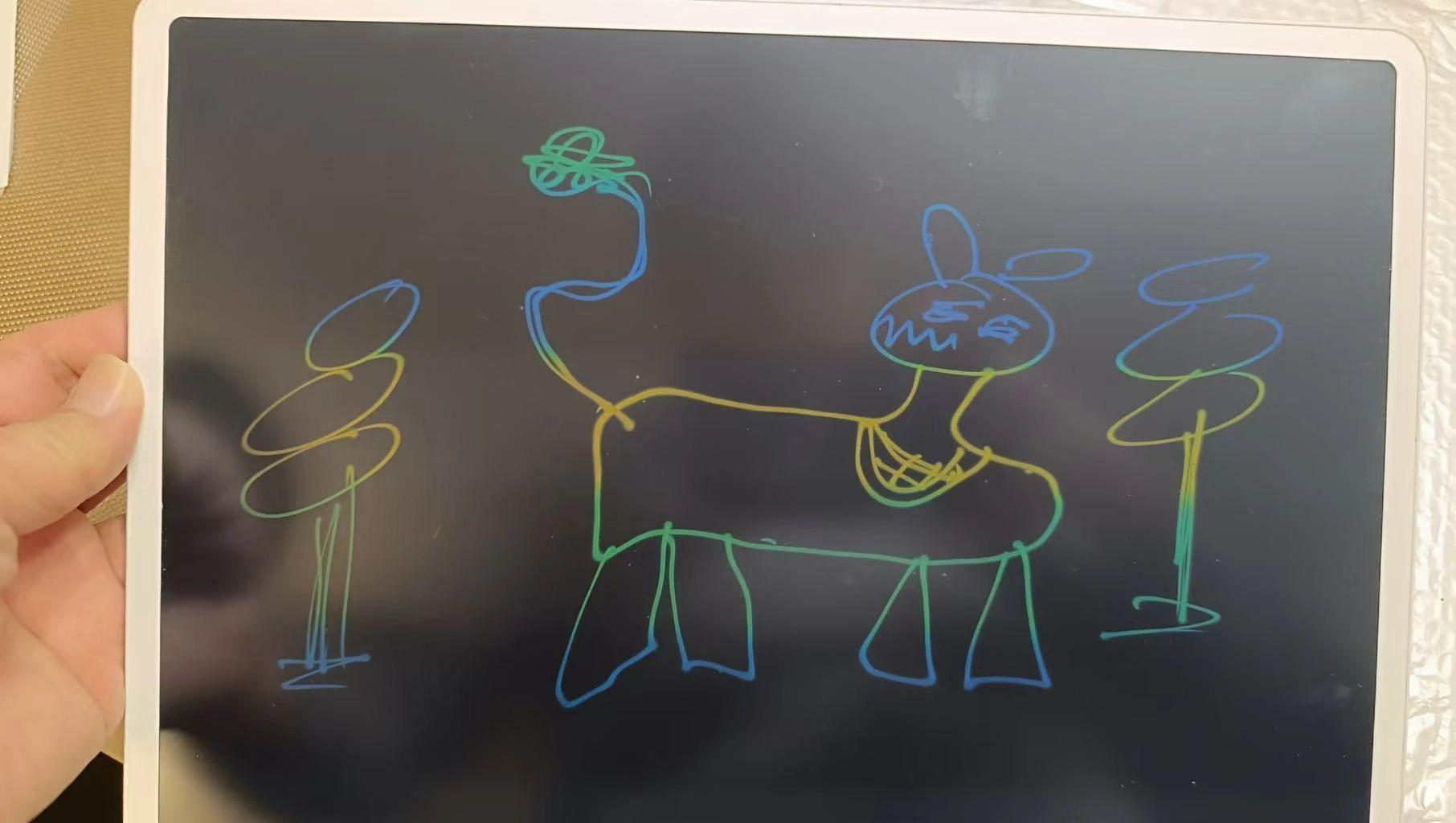 这幅看似简单的作品中蕴藏着丰富的想象力和童趣。画面中,一个幻想中的动物在两棵树之间漫步,线条简单而富有表现力,色彩明亮而大胆。这样的风格让人联想到保罗·克利的天真艺术,他以简洁却富有深意的图画表达复杂的情感与思想。儿童艺术的魅力在于它的不拘一格和自由的表达方式。在这幅作品中,创作者使用了流畅的线条和鲜艳的颜色,巧妙地捕捉了一种纯真和自然的主题。为了使作品更具层次感和故事性,可以考虑加入背景元素,如柔和的云朵、温暖的太阳,甚至是其他动物伙伴,让整个画面更加生动。这不仅可以增强视觉效果,更能引发观者对童年和自然的无限遐想。通过这些调整,作品可以从简单的儿童涂鸦升华为具有深度和艺术性的作品,触动观者心灵深处的童真。