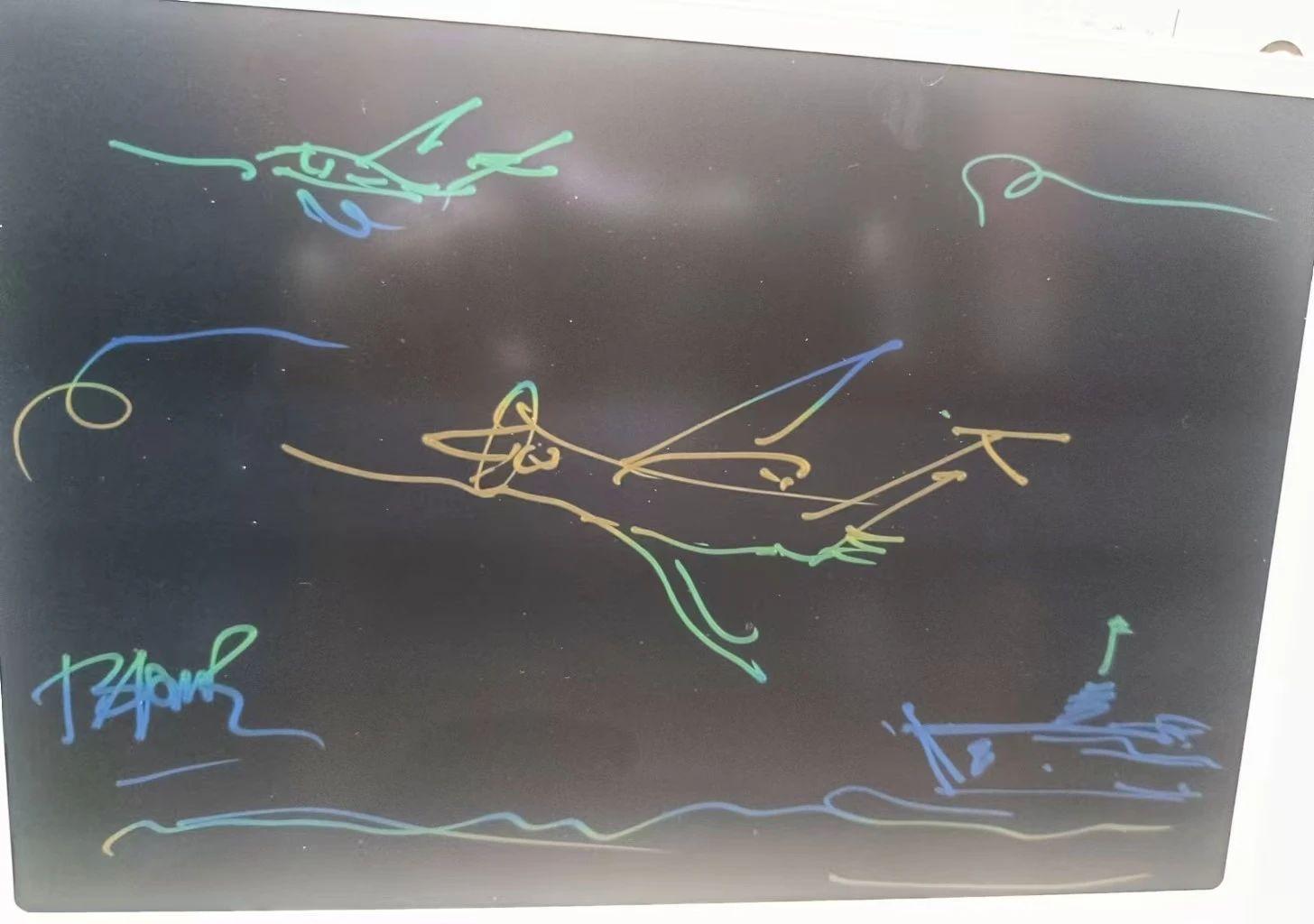 这幅作品通过简单的线条和鲜艳的色彩,展现出儿童在艺术表达中的天真与自由。可以进一步突出飞行主题,通过增加背景元素如云朵和星星,增强作品的梦幻感。尝试运用渐变的色彩来表现天空的深邃和广阔,使作品在视觉上更加丰富。此外,可以考虑通过不同的线条粗细来增加飞机的细节,以丰富图像的层次感。这样的处理将使作品更具吸引力,同时也保留了其原本的纯真与活泼。