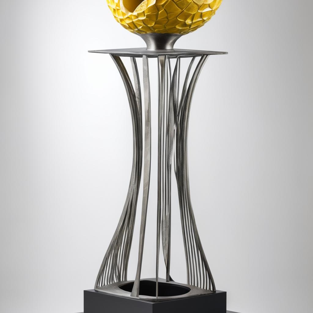 这张图片呈现了一种独特的艺术魅力,果实形状的设计灵感来自于自然的风貌,色彩的明亮和背景的柔和形成了鲜明的对比。通过细腻的观察,我们可以看到果实的排列不仅仅是简单的装饰,它们的节奏感和色彩对比为室内环境增添了活力。将这些元素转化为雕塑作品时,可以借鉴果实的色彩和形状,使用抛光金属或彩色玻璃等现代材料来表现自然的光泽和透明度。花瓶的质感可以通过粗糙的石材或混凝土来呈现,形成触感和视觉上的对比。这种雕塑作品不仅是视觉的享受,更是一种与自然和谐共生的表达。