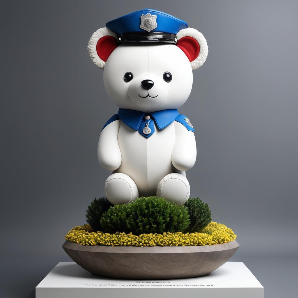 将泰迪熊的形象转化为雕塑时,可以保留其可爱的特征,例如圆润的身体和友好的面部表情。警服的元素可以融入雕塑的细节设计中,赋予其文化象征意义。雕塑可以使用温暖的石材或木材来表现其温馨的情感,与背景中的植物元素结合,形成和谐的自然主题。光影效果可以通过雕塑表面的纹理处理来增强,增加雕塑的空间表现力和视觉吸引力。