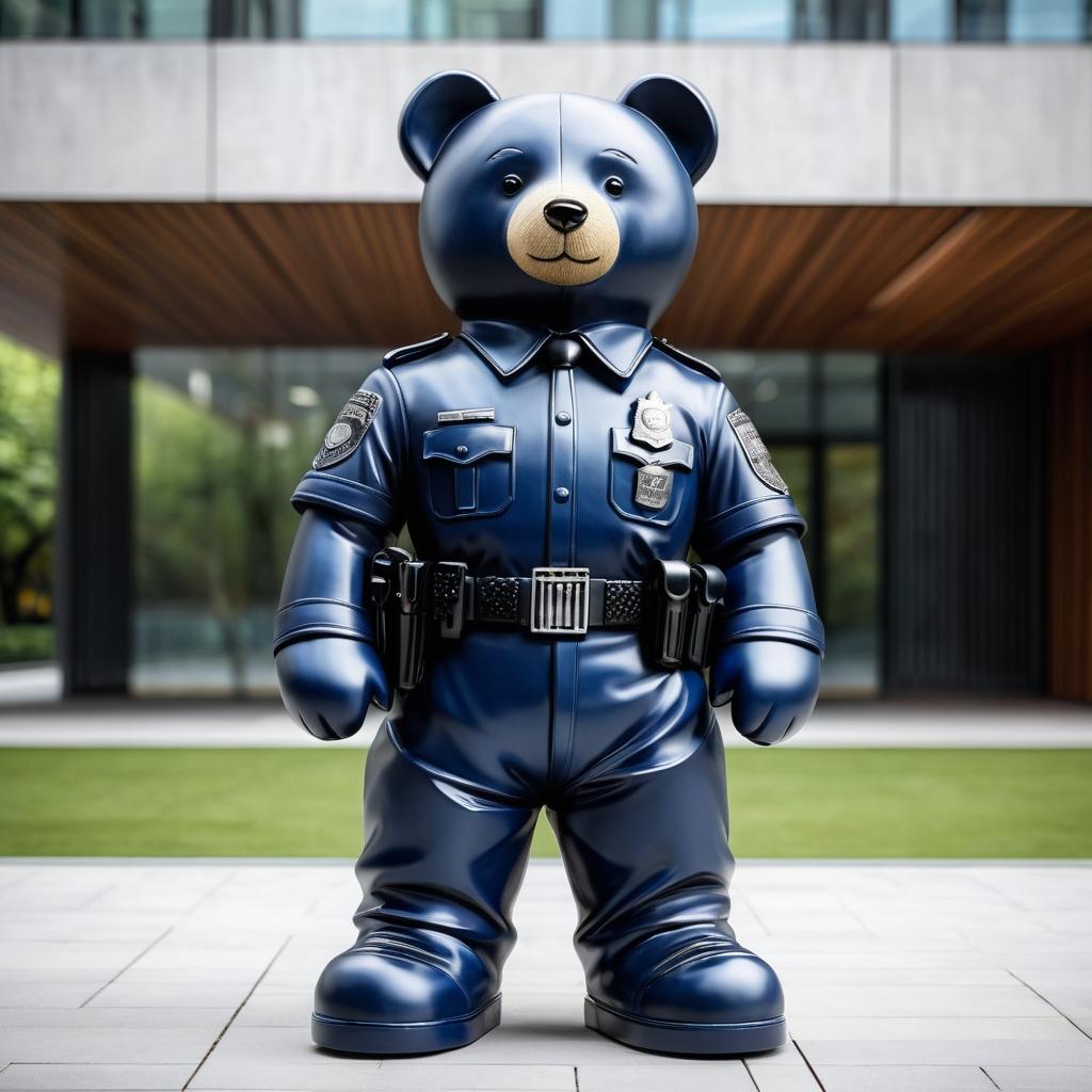 这幅作品中,一只穿着警服的泰迪熊坐在桌面上,阳光透过窗户洒下,赋予整个画面一种宁静而温暖的氛围。泰迪熊是许多人童年记忆中的重要角色,而警服则赋予其一种责任感和文化象征意义。通过将这幅图像转化为雕塑,可以探索如何将温馨的情感和文化元素结合在一起。雕塑设计可以通过保留泰迪熊友好的表情和圆润的形态,以及警服的细节,赋予作品丰富的内涵。使用温暖的材质如石材或木材,并结合背景中的自然元素,可以创造出一种和谐美好的氛围。这样的设计不仅具有视觉上的吸引力,还能够唤起人们对温暖与安全的感受。