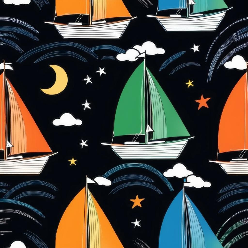 这幅作品的简约风格使其充满了童趣和想象力。小船漂浮在一个看似无垠的黑色背景中,象征着无尽的可能性和冒险。为了增强这幅作品的艺术感染力,可以考虑在背景中加入一些星星或者月亮,使整体画面更加丰富和梦幻。在色彩上,可以尝试使用更多的渐变效果,增加图像的层次感。此外,添加一些细节,比如水波纹或云,可以为作品增添生动感。通过这些调整,作品不仅能保留其简约的美感,还能更好地传达一种探索未知的奇妙感受。