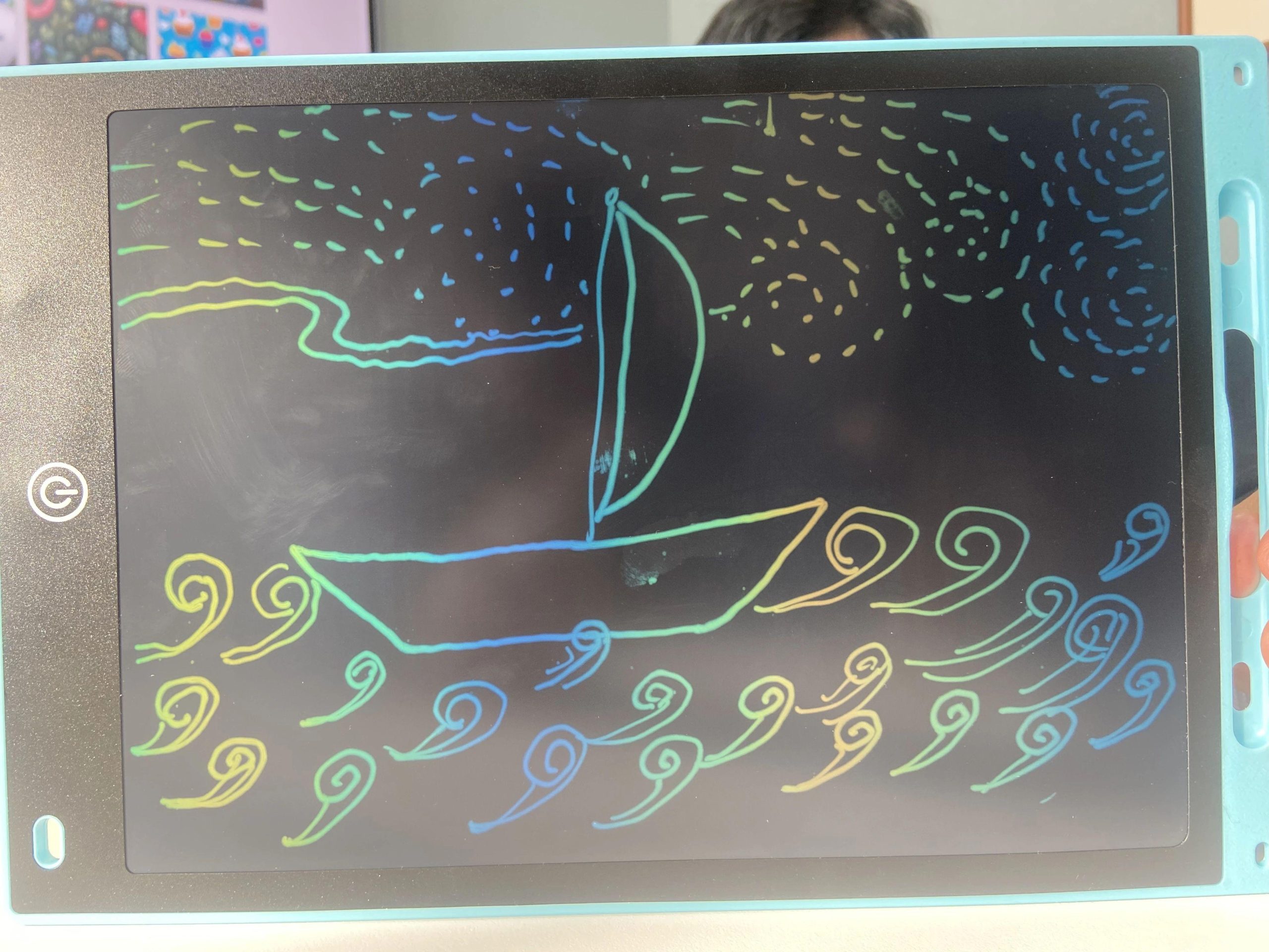 这幅作品以其简单却富有表现力的风格,展现了一个充满活力的海洋世界。小船在波浪中航行,背景是用蓝色和黄色描绘的抽象云朵和波浪,给人一种跃动的感觉。这种风格非常适合用于儿童艺术教育,因为它不仅易于理解,还能激发孩子们的创作欲望。通过这样的作品,孩子们可以探索色彩和形状的多样性,培养他们的想象力和艺术表达能力。为了提升作品的艺术深度,我们可以考虑增加色彩渐变和光影效果,使画面更具立体感。此外,背景中加入一些细节,如飞翔的海鸟或远处的岛屿,可以丰富画面的故事性,使观众在欣赏的同时,也能感受到一种探索与发现的乐趣。总之,这样的作品不仅仅是视觉上的享受,更是情感和想象力的激发。
