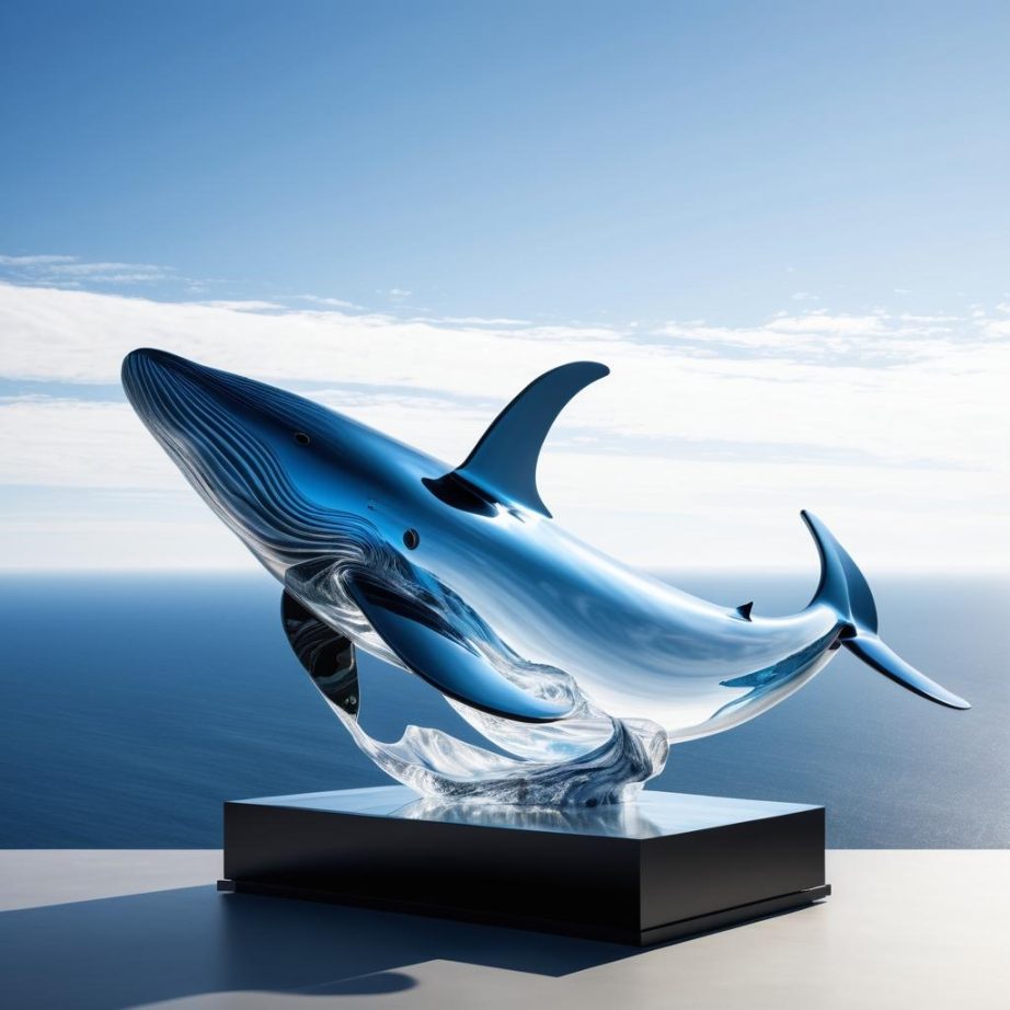这幅作品通过飞机与鲸鱼影子的结合,创造了一种独特的视觉体验。天空的蓝色调与云层的柔和曲线,传达出宁静与广阔的情感,而鲸鱼的影子则增添了神秘感。雕塑设计可以从中汲取灵感,利用透明材质展现云层的轻盈与深邃。通过光影效果增强雕塑的空间表现力,使观众不仅感受到视觉上的美感,更能通过作品与自然产生深层次的联结。此设计将天空的动态与海洋的深邃结合,创造出一种和谐的艺术表现,激发观众对于自然世界的无限想象。