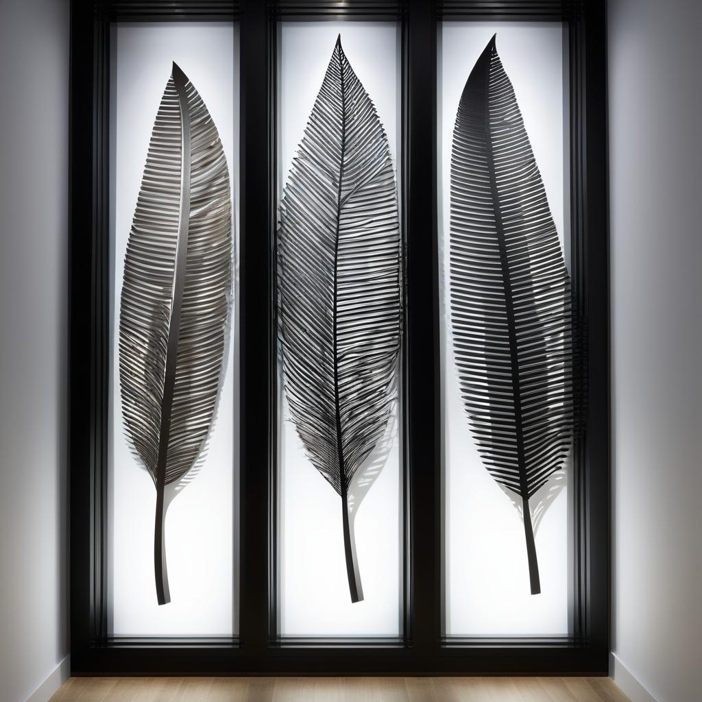 这件作品巧妙地融合了自然元素和人工造物的细节。创作者通过使用类似树叶或羽毛的形态,结合现代的切割技术,营造出一种古典与现代的对话。这种对话可以通过增加光影变化和材质的对比来进一步强化。建议使用更丰富的材料,例如加入木材或金属来增加质感和视觉多样性。此外,通过背景的色调变化,可以更好地引导观众的视线,从而让作品在情感上产生更深的共鸣。