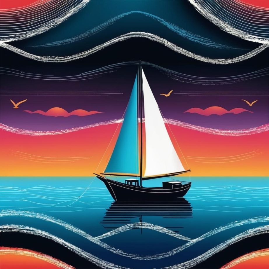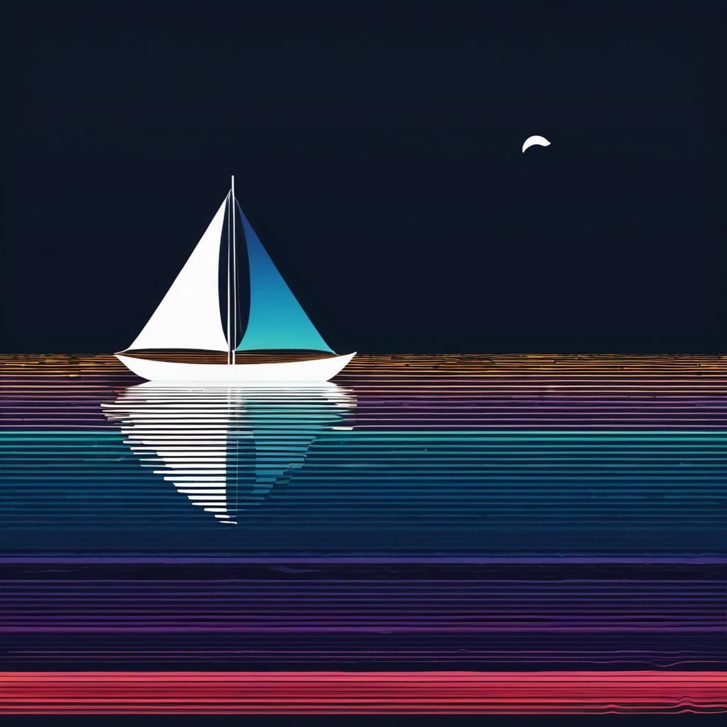 这幅作品以其简单而直接的表现手法唤起了观者的童年记忆。画中的船采用了明亮的线条,背景则是深色的对比,使得整个画面具有一种强烈的视觉冲击力。这样的设计不仅体现了儿童艺术作品的纯真和天真,同时也让人联想起无拘无束的童年时光。通过这种简约的形式语言,创作者成功地传递了一种宁静而又充满幻想的氛围。