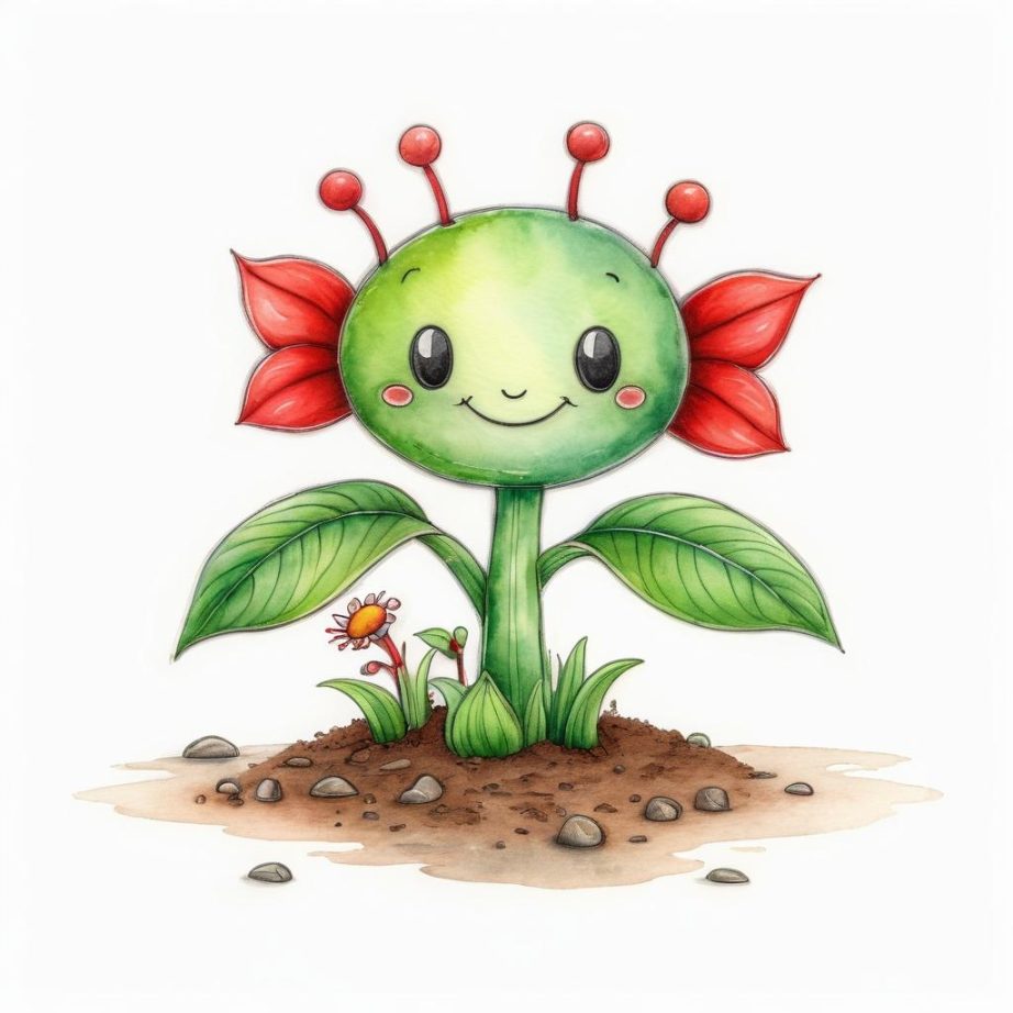 这幅作品以其简单而富有表现力的线条捕捉了童趣的精髓。形状和颜色的运用使其充满生命力和想象力。为了提升作品,可以考虑增加背景元素,如简单的天空和地面,以突出主题的自然生长。还可以通过使用水彩或彩色铅笔来丰富色彩层次,使画面更生动。此外,添加一些小动物或昆虫在植物周围,可以增加趣味性和故事性,使观众更能与作品产生情感共鸣。